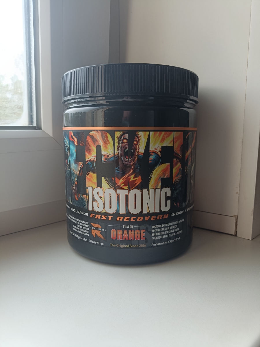 ISOTONIC Reckful 750 гр в порошке для восстановления, водно-солевого баланса, общего восстановление организма во время и после тренировок. Содержит в своем соствае витамины и минералы необходимые любому спортсмену и человеку, ведущему здоровый образ жизни.В процессе тренировки или тяжелой физической работы организм теряет много воды, а вместе с ней и необходимые организму минералы, а витамины расходуются на ускоренные процессы восстановления. Изотоник порошок предназначен для восполнения в организме витаминов и минералов, утраченных в результате физических нагрузок. Прием изотоника RECKFUL дает большую эффективность и качество тренировок, поможет восстановиться при циклических видах спорта.Изотонический напиток создан для людей, занимающихся игровыми, силовыми видами спорта, фитнесом либо просто ведущих активный образ жизни. Изотоник рекфул - это баланс витаминов и минералов, быстрое восстановление организма и низкая калорийность. Прием в процессе тренировок так же поддерживает водный баланс. Изотоник спортивыный оказывает комплексное действие и позволяет провести максимально эффективные тренировки, дополняет спортивное питание девушек и парней, насыщая организм энергией. Сбалансированный состав быстрее восстанавливает потребности и оптимально усваивается.Также витамино-минеральный напиток рекфул изотоник поможет избежать обезвоживания в жаркий день, не зависимо от того занимаетесь ли Вы спортом или просто гуляете в жаркую погоду. Помогает справиться с судорогами, спазмами и сведением мышц.Рекомендации по применению: для получения одной порции смешайте 25 г (1 мерную ложку) с 200-400 мл воды. Рекомендуется принимать до и во время нагрузки.