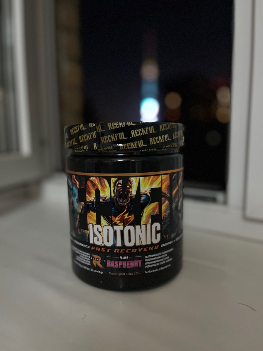 ISOTONIC Reckful 750 гр в порошке для восстановления, водно-солевого баланса, общего восстановление организма во время и после тренировок. Содержит в своем соствае витамины и минералы необходимые любому спортсмену и человеку, ведущему здоровый образ жизни.В процессе тренировки или тяжелой физической работы организм теряет много воды, а вместе с ней и необходимые организму минералы, а витамины расходуются на ускоренные процессы восстановления. Изотоник порошок предназначен для восполнения в организме витаминов и минералов, утраченных в результате физических нагрузок. Прием изотоника RECKFUL дает большую эффективность и качество тренировок, поможет восстановиться при циклических видах спорта.Изотонический напиток создан для людей, занимающихся игровыми, силовыми видами спорта, фитнесом либо просто ведущих активный образ жизни. Изотоник рекфул - это баланс витаминов и минералов, быстрое восстановление организма и низкая калорийность. Прием в процессе тренировок так же поддерживает водный баланс. Изотоник спортивыный оказывает комплексное действие и позволяет провести максимально эффективные тренировки, дополняет спортивное питание девушек и парней, насыщая организм энергией. Сбалансированный состав быстрее восстанавливает потребности и оптимально усваивается.Также витамино-минеральный напиток рекфул изотоник поможет избежать обезвоживания в жаркий день, не зависимо от того занимаетесь ли Вы спортом или просто гуляете в жаркую погоду. Помогает справиться с судорогами, спазмами и сведением мышц.Рекомендации по применению: для получения одной порции смешайте 25 г (1 мерную ложку) с 200-400 мл воды. Рекомендуется принимать до и во время нагрузки.