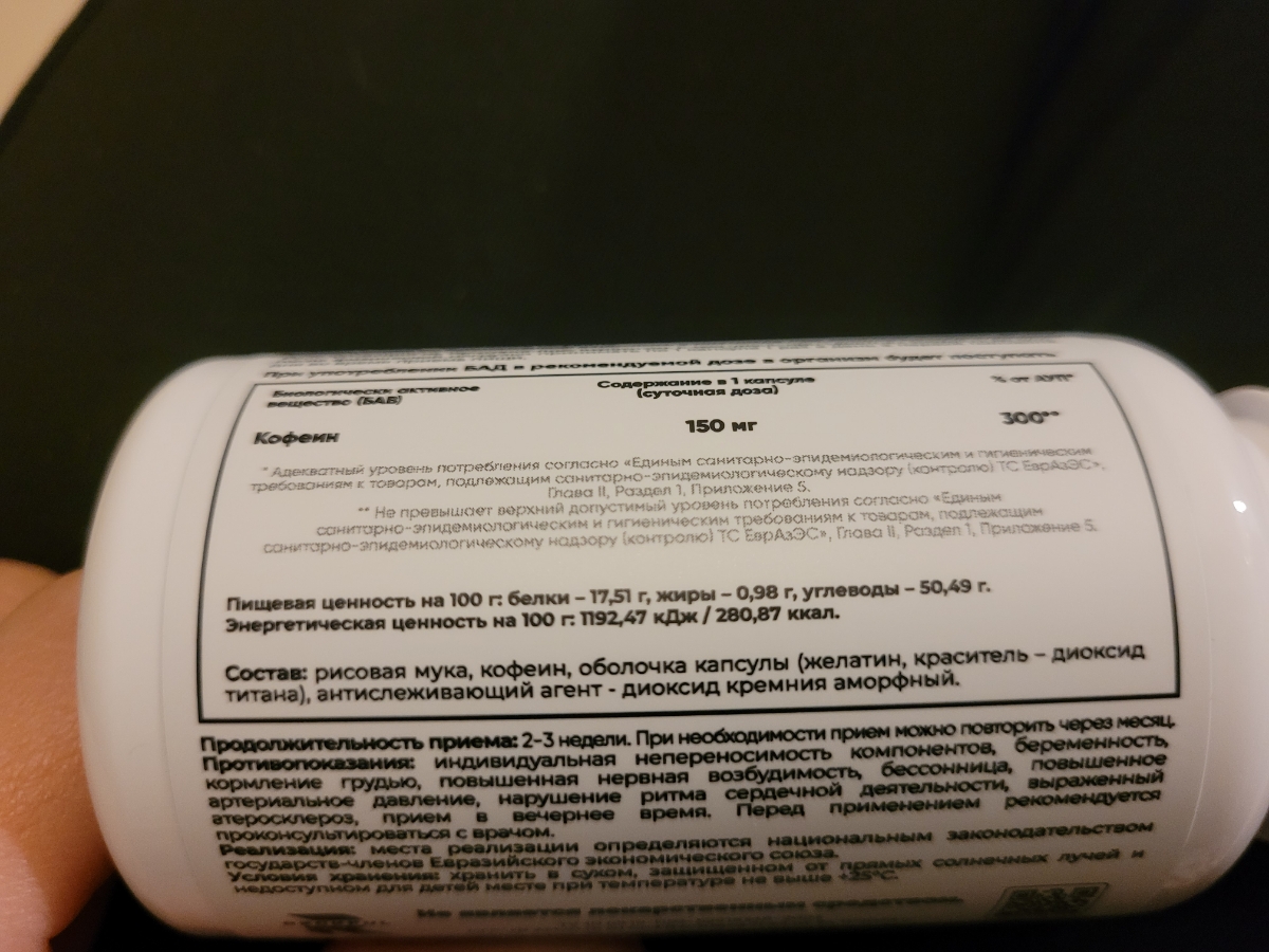 Добрый вечер, кофеин пробовал пить перед тренировкой в вечернее время 1 капсулу, вполне себе эффект, лёгкий бодрящий. аритмии или чего то негативного с сердцем не заметил, ночью заснул также хорошо, через пару тренировок попробую две капсулы. рэкфул спасибо за добавки