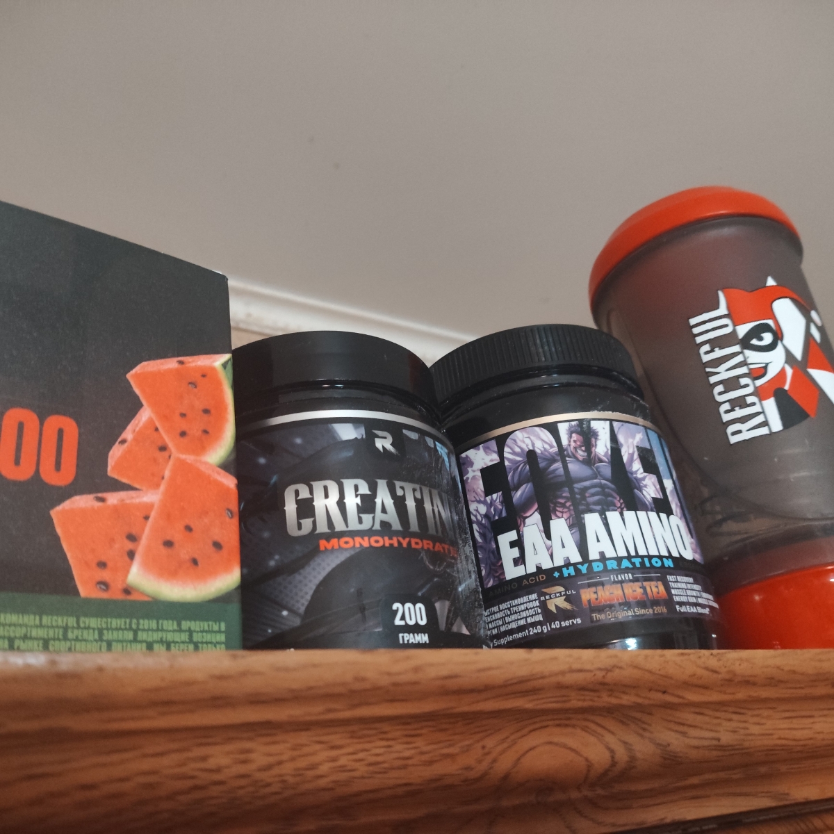 Reckful Amino EAA + Electrolytes в порошке со вкусом персикового чая.