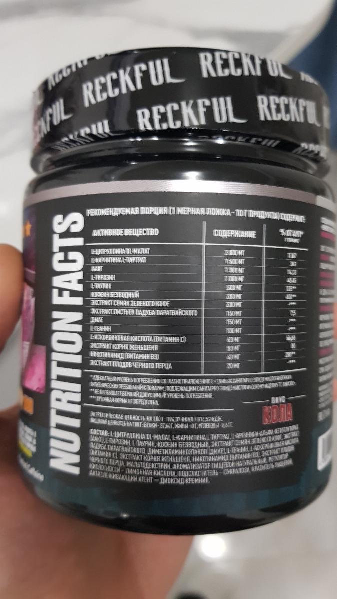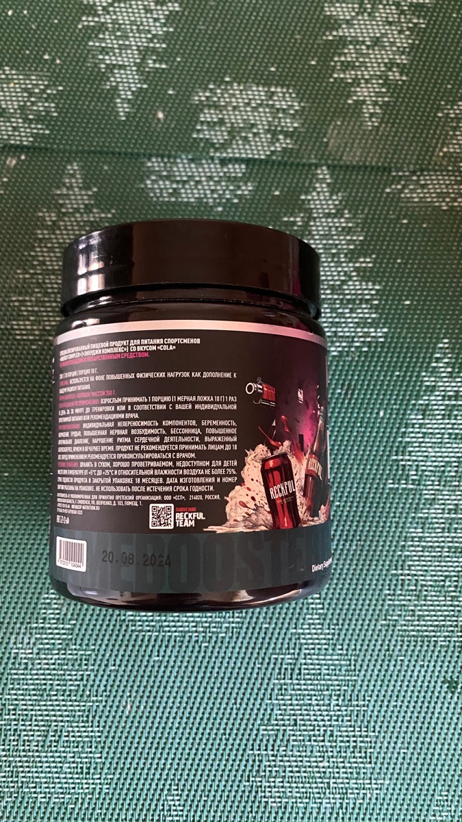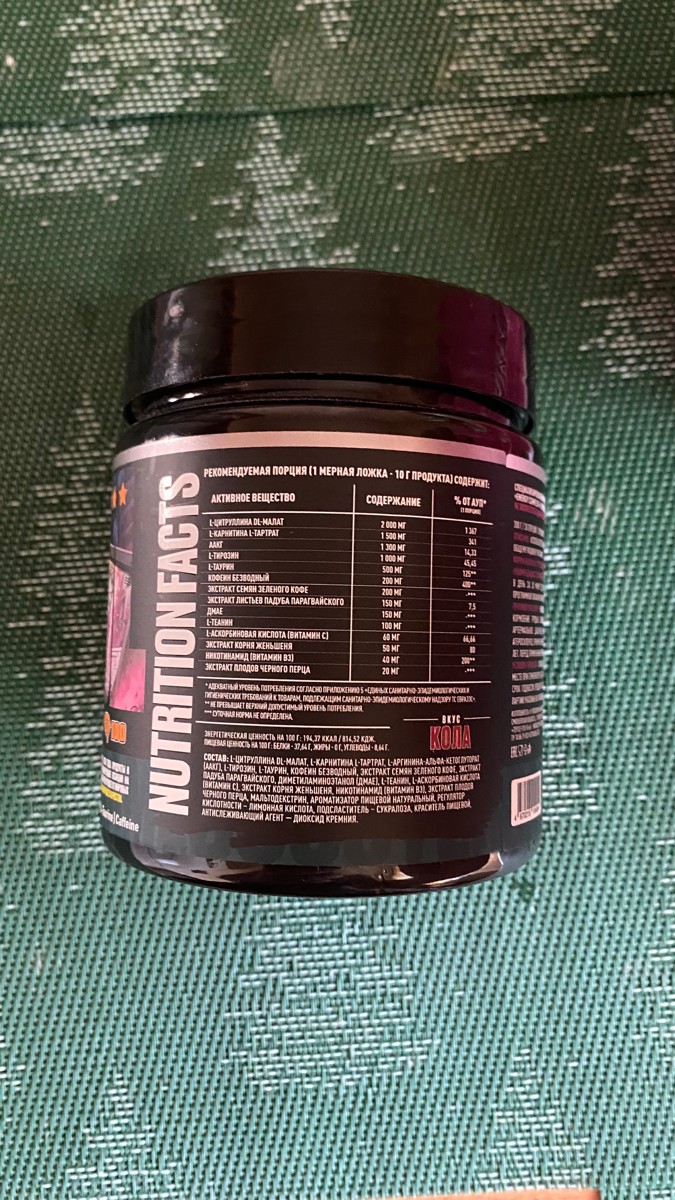 Отличный продукт. Использую именно как предтрен, отлично стимулирует и улучшает фокус на тренировке. При этом нет диких отходняков или черезмерной стимуляции, как от оригинальных Рекфулов. Отличный ноотропный эффект. Можно добавить The Pump от этого же бренда или No Stim чтобы тренировка прошла совсем на ура. В подарок положили розовый шейкер, очень приятно. Единственное что вкус кола конечно где-то на 3 с +. Оцениваю вкус именно на фоне других продуктов данного бренда.