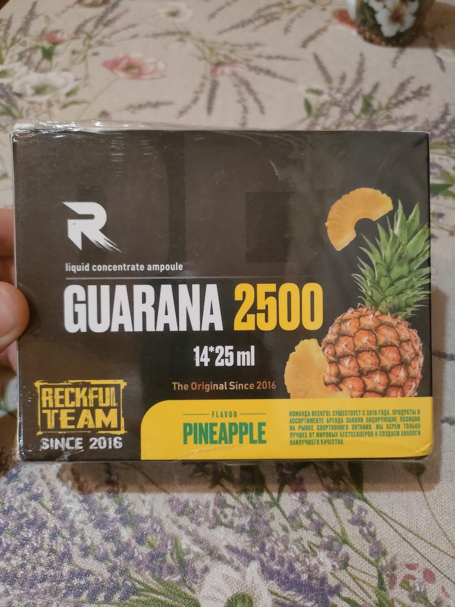 RECKFUL Guarana 2500 Liquid Ampules — ваш идеальный помощник для повышения энергии и концентрации с приятными вкусами: арбуз, ананас и вишня! Этот мощный энергетический напиток создан на основе натурального экстракта гуараны, известного своими стимулирующими свойствами. Каждая порция энергетика содержит 2500 мг экстракта гуараны. Guarana extract в связанной форме содержит активное вещество кофеин, которое способствует расщеплению жировых запасов, благодаря чему является одним из самых популярных термогеников. Ускоренное высвобождение свободных жирных кислот в кровь во время физической нагрузки сберегает запасы гликогена в мышечных клетках, повышает работоспособность и выносливость, увеличивает жиросжигательный эффект аэробных тренировок. Идеально подходит для спортсменов, студентов, геймеров и всех, кто ведет активный образ жизни. Попробуйте гуарану 2500 в жидких ампулах от Рекфул и ощутите прилив энергии, необходимый для достижения ваших целей!