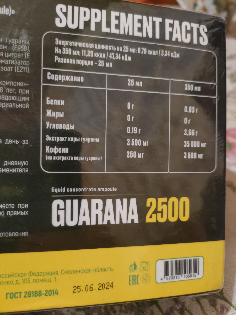 Отличная цена за отличный набор из 14 ампул. 250мг кофеина на шот. Срок годности неплох. А больше ничего и не надо.