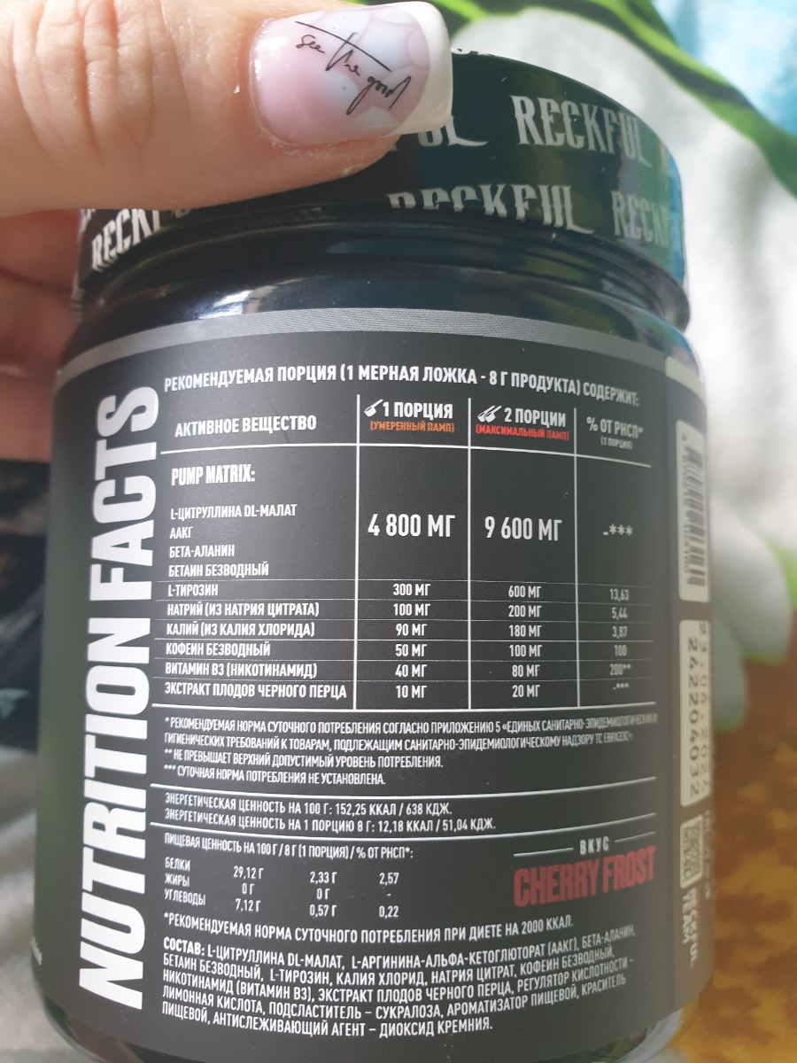Доставка за несколько дней. Обернута была в пупырку. Бонусом положили пробник предтрена, - за это отдельный респект!?? Попробую сие чудо ~ через месяц, пока что нахожусь на сушке) Думаю с креатином в паре будет бомба! ??
