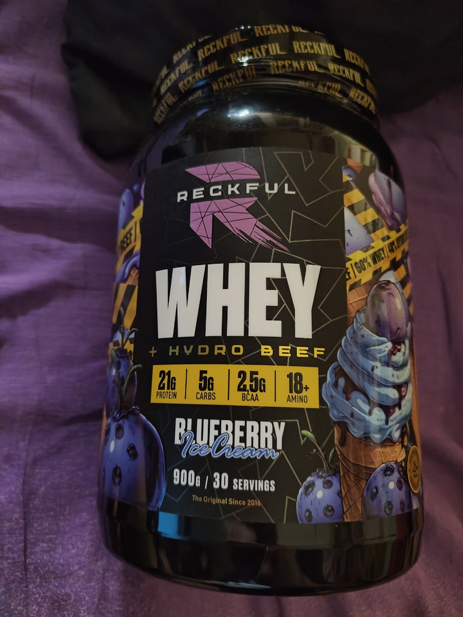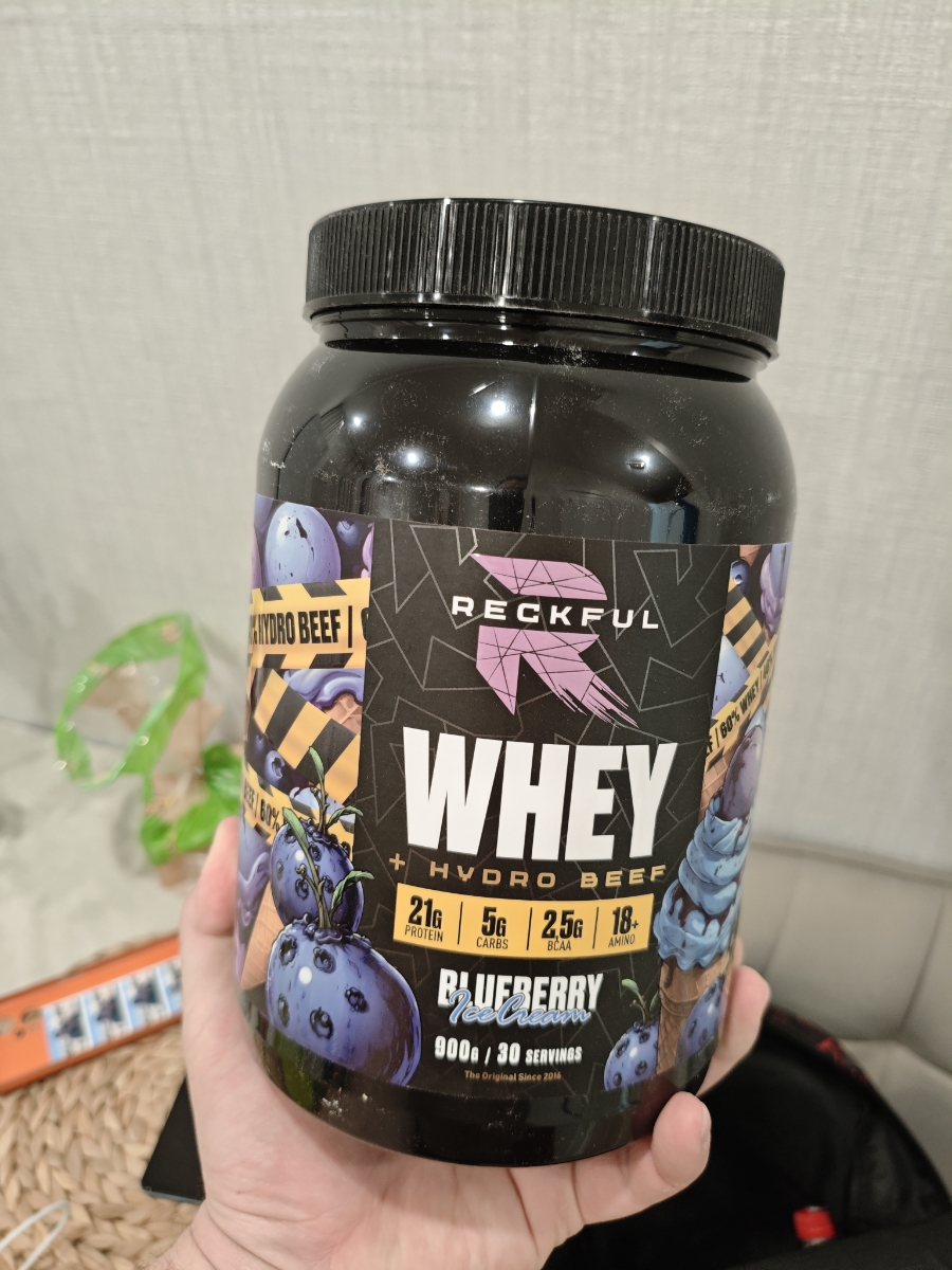 Reckful Delicious Whey + Beef Protein 900 граммов со вкусом черники — комплексный протеин без добавления сахара и практически не содержащий в своем составе углеводы.
