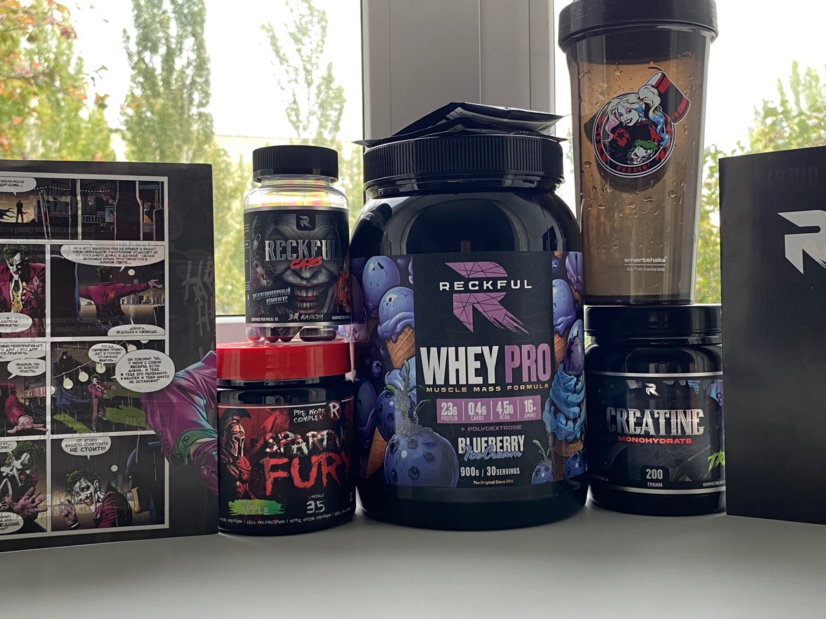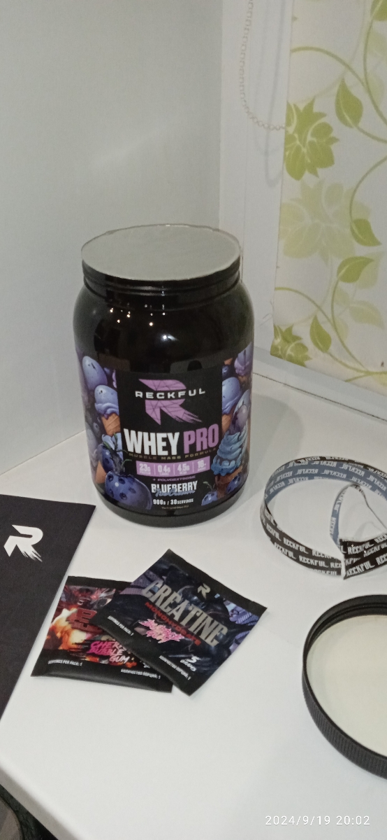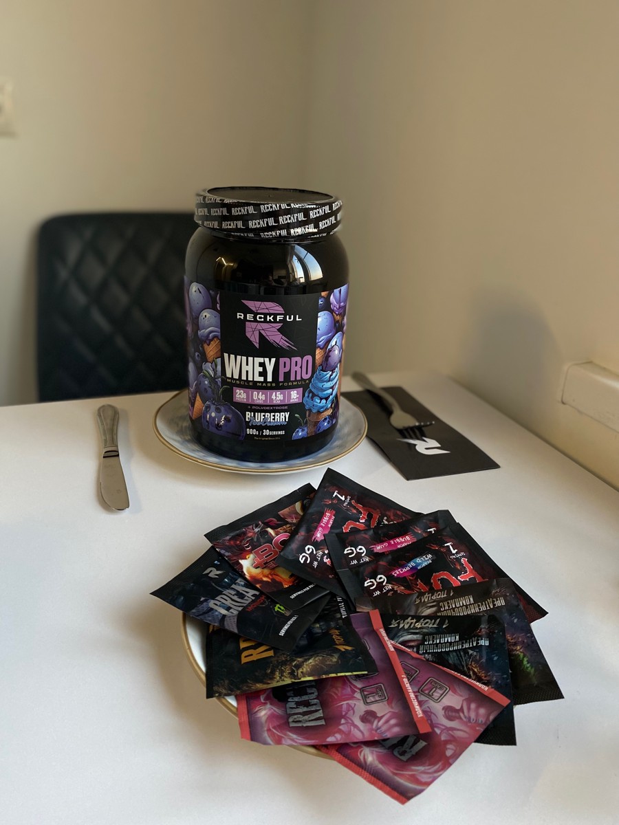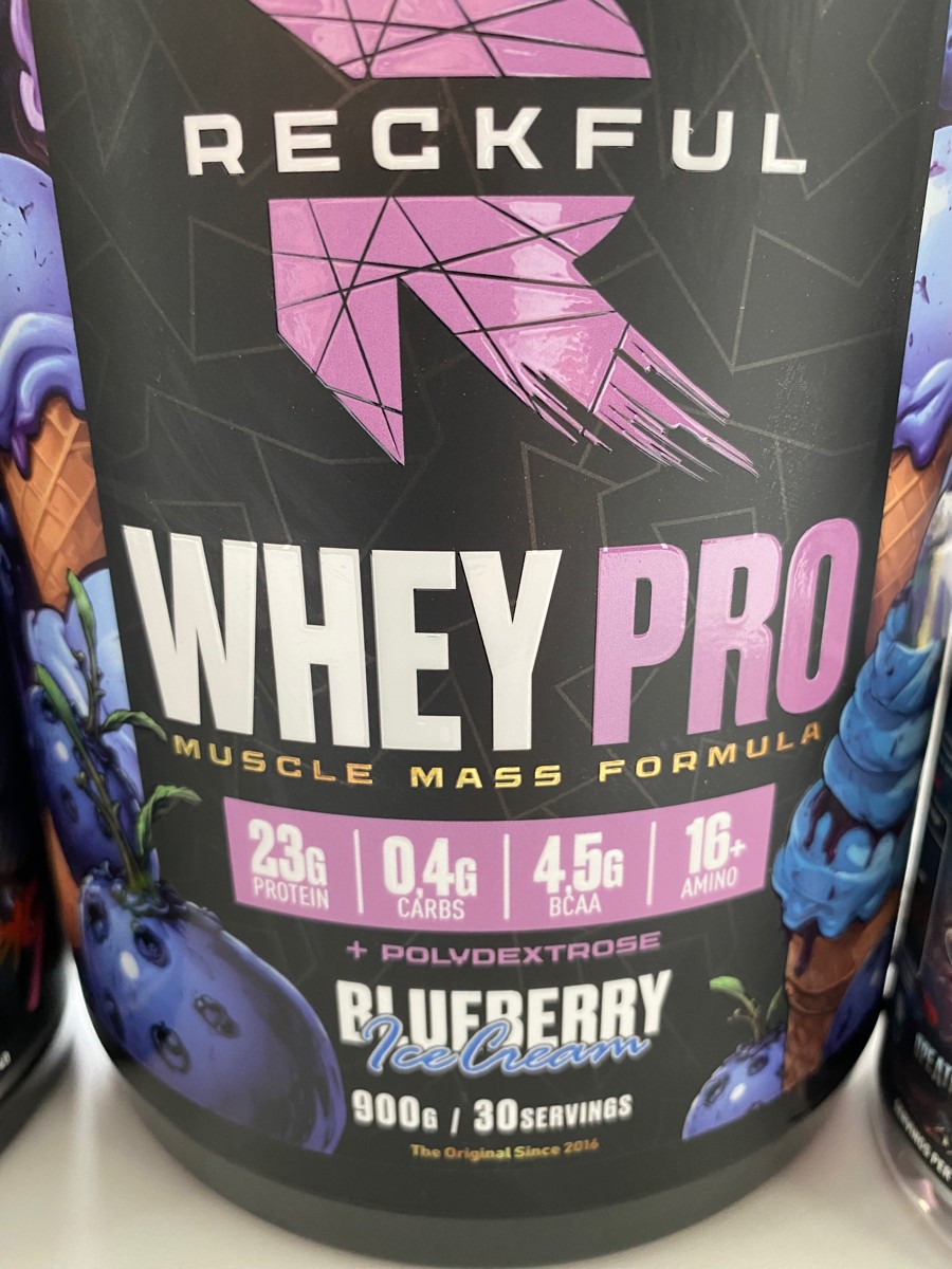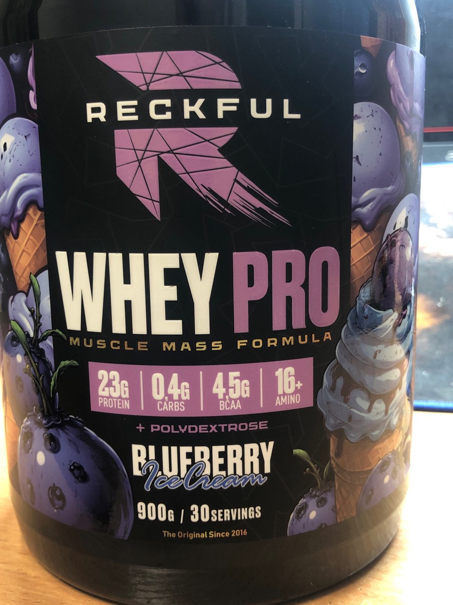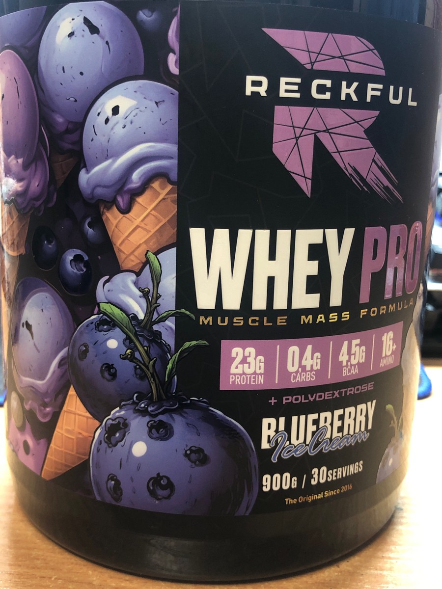 Reckful Delicious Whey Protein 900 граммов со вкусом черники — сывороточный протеин без добавления сахара и практически не содержащий в своем составе углеводы.