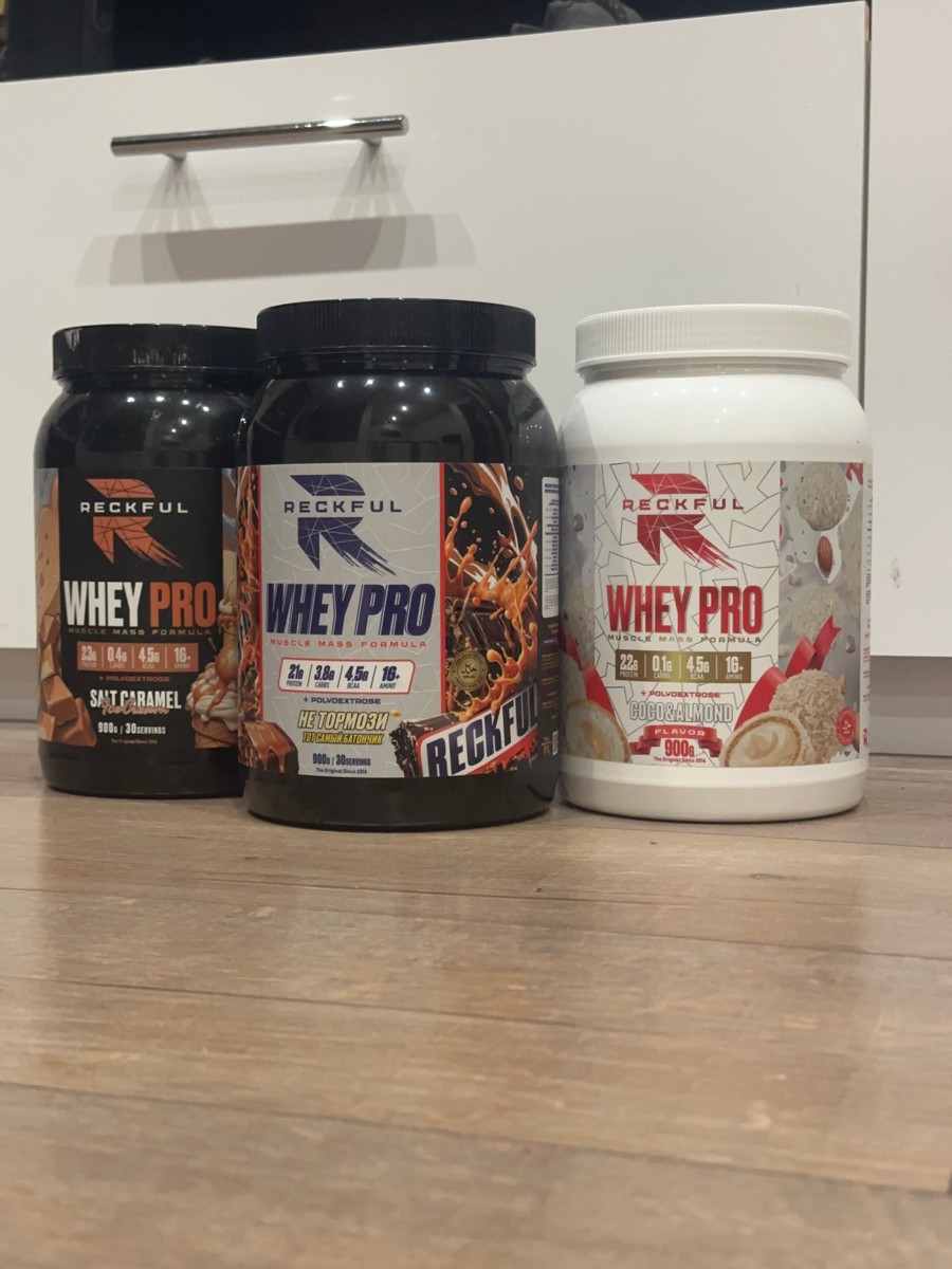 Reckful Whey Pro Protein 900 граммов со вкусом сникерс — сывороточный протеин без добавления сахара и практически не содержащий в своем составе углеводы.