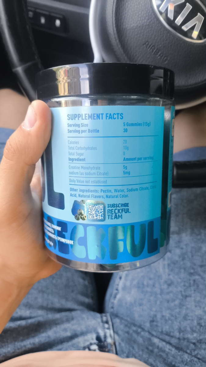 Быстрая доставка, надёжная упаковка в коробку! Новый формат креатина моногидрата в виде мармелада от российского производителя Reckful! Будем тестировать эту вкусняшку!!!)))) Прикольный формат-в 4 штуках содержится 5 гр.креатина. Срок годности до 09.07.27 г. Рекомендую товар к покупке нуждающимся и привет чату!!!