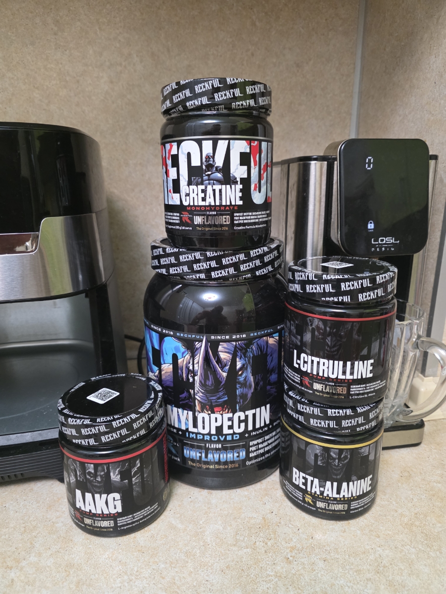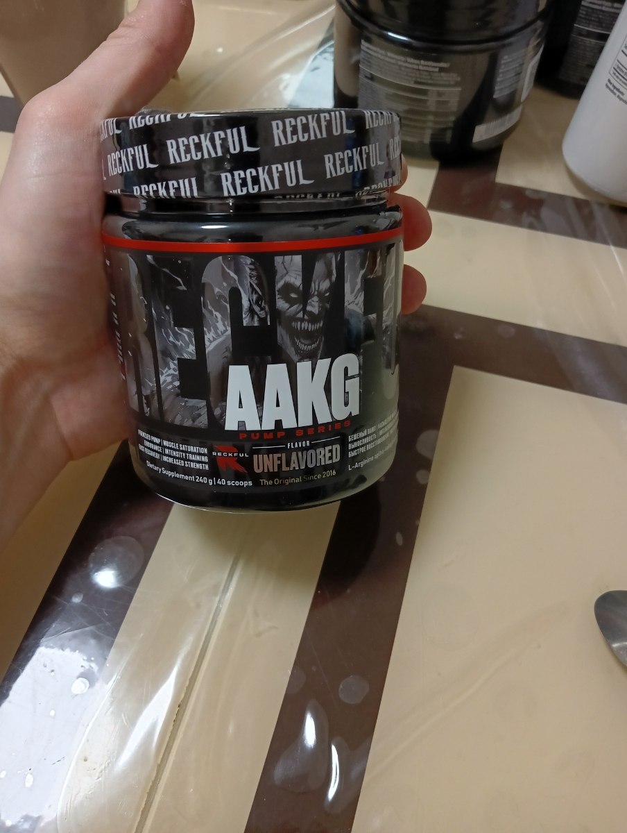 Reckful L-Arginine AAKG - порошок, содержащий аминокислоту аргинин альфа-кетоглутарат.