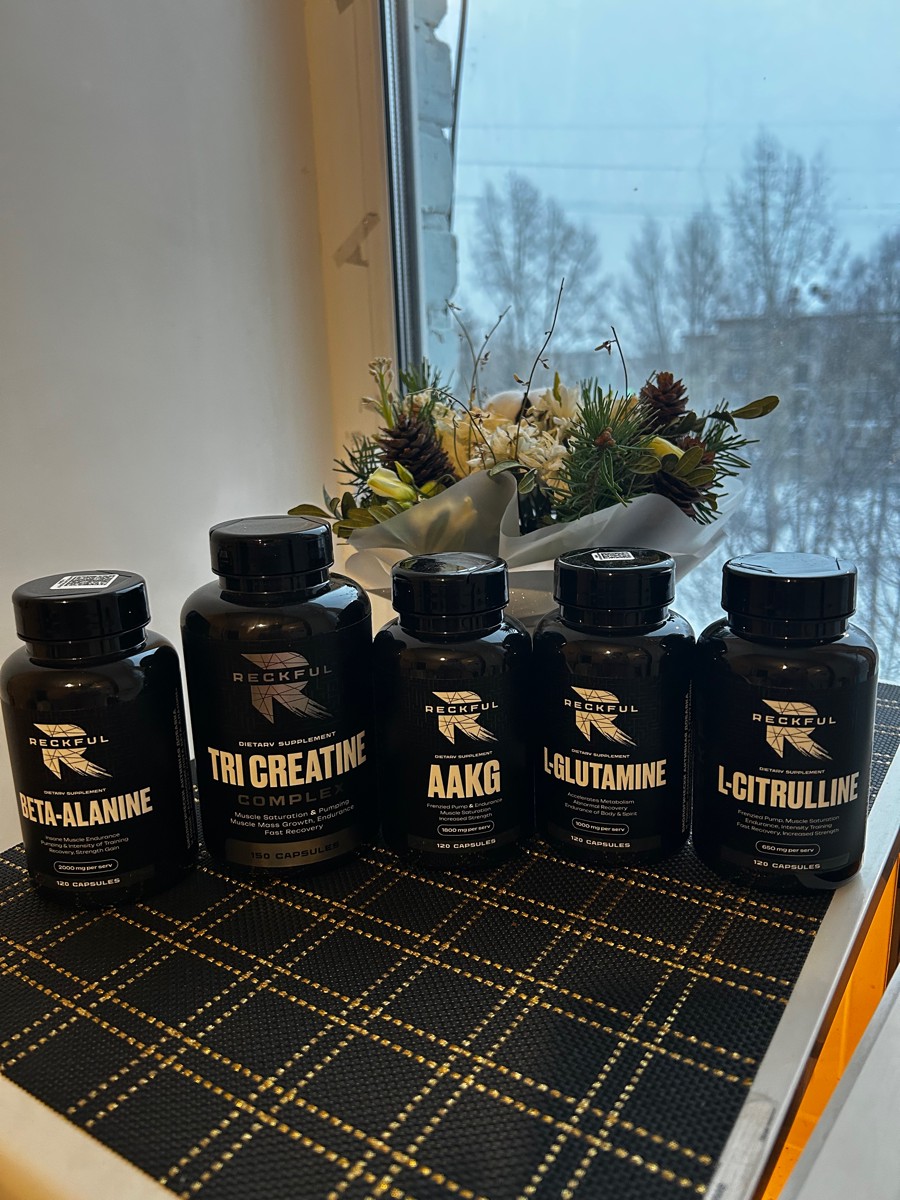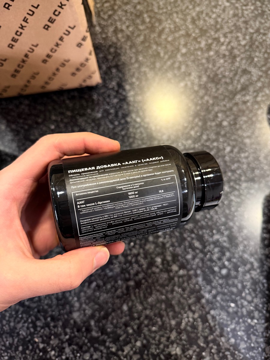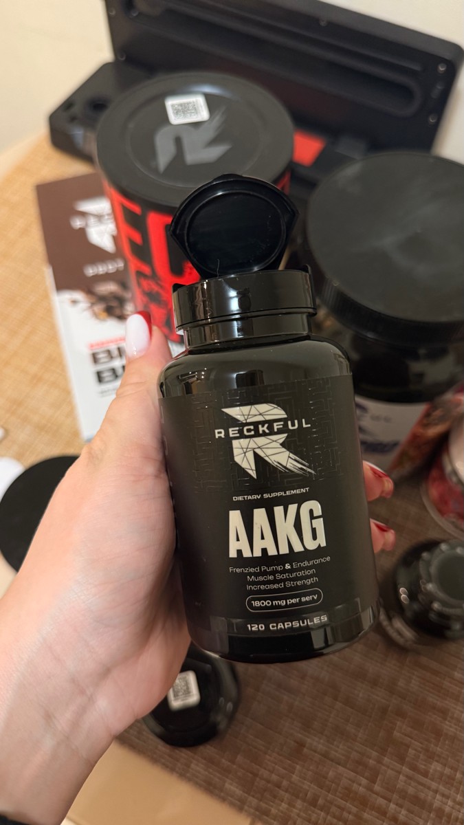 Оценка: ★★★★ ★ (Вопрос эффективности для спорта, но удобная форма) · Формат — удобство как всегда. Капсулы Reckful — это привычный мастхэв для тех, кто не хочет возиться с порошками. Никакого вкуса, никакой пыли. Выпил и забыл, идеально для приема вне дома. · Цель — памп и сосудистость. Как и цитруллин, аргинин работает через усиление выработки оксида азота (NO), который расширяет сосуды. В теории это должно давать мощный пампинг и улучшать доставку питательных веществ к мышцам. · Более доступная форма AAKG. В этой версии используется аргинин альфа-кетоглутарат (AAKG), который позиционируется как форма с улучшенной усвояемостью. Итог: Если ты уже пробовал цитруллин от Reckful и хочешь сравнить эффект или ищешь удобную капсульную форму донатора NO — можешь поэкспериментировать. Для многих это безопасная добавка. Аргинин в капсулах — это скорее удобный формат для проверки личной переносимости и реакции, чем гарантированный инструмент для прорыва в результатах.