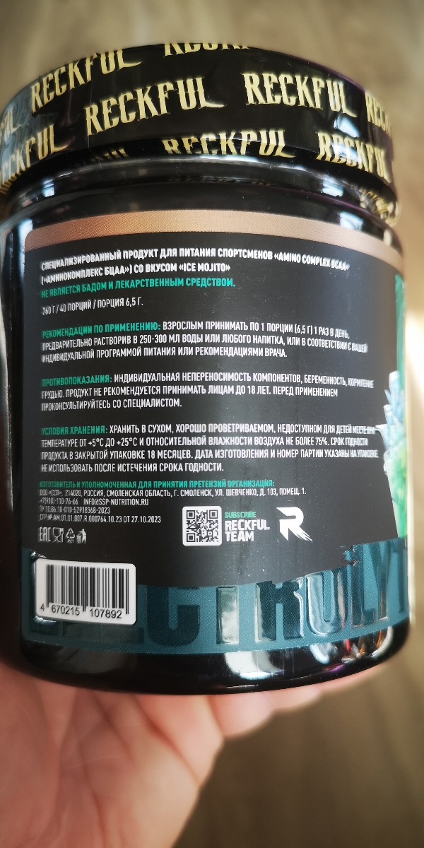 Этот BCAA отличный 🔥 У Reckful вообще топовые аромки, очень приятные, пьешь как полезный лимонад))