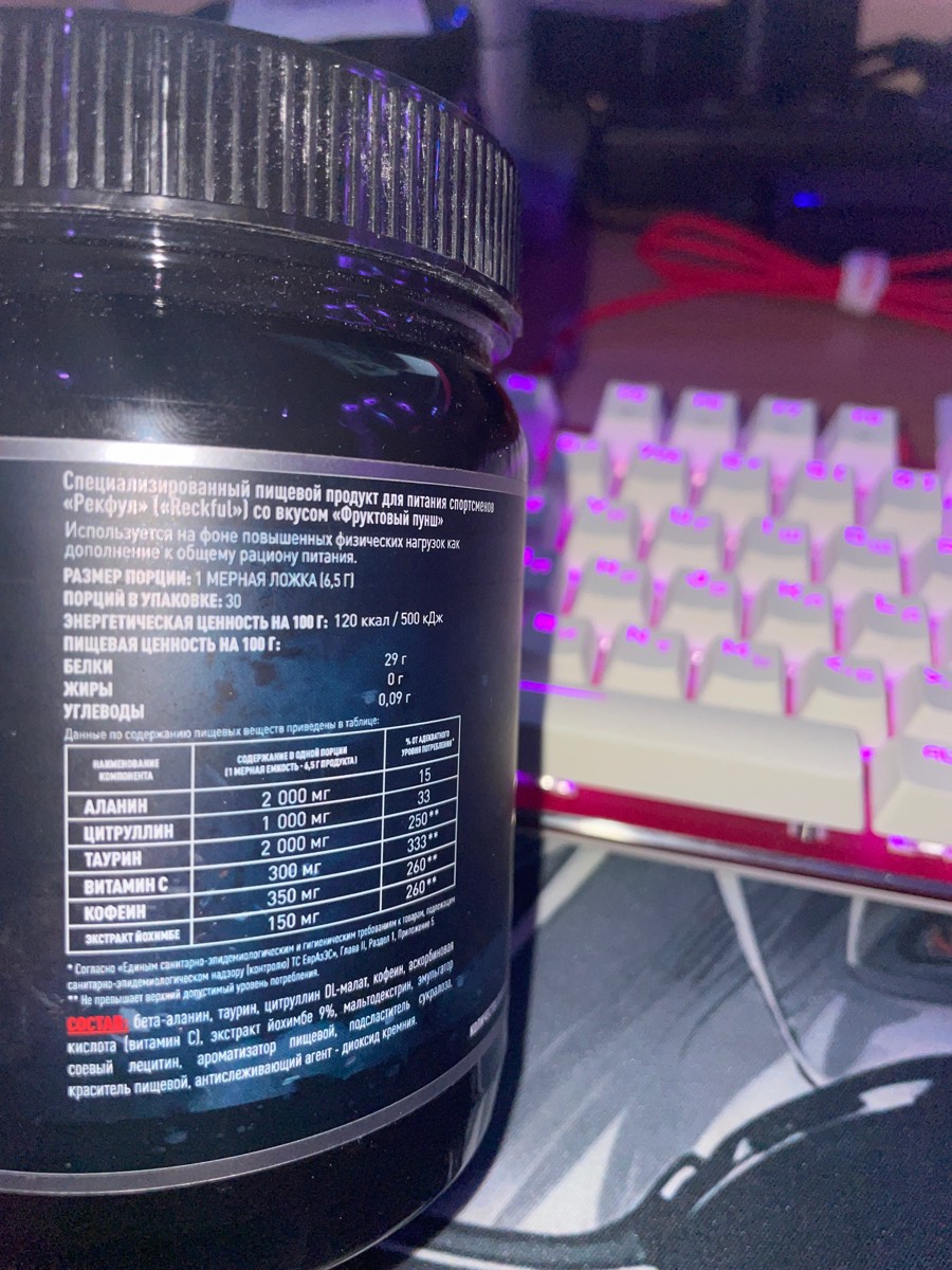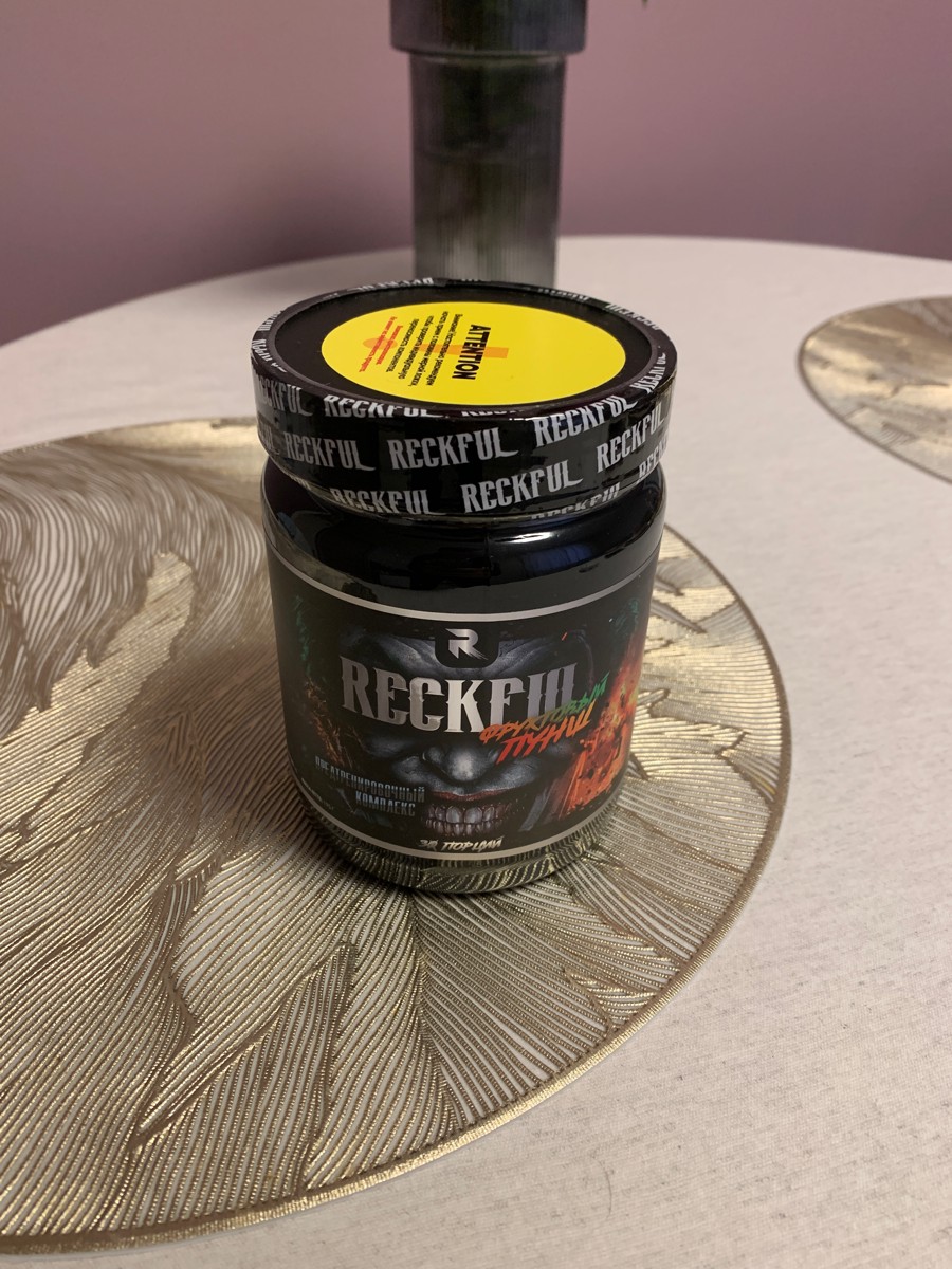 Просто отличный предтрен. Не скажу что я эксперт в этом деле, это мой первый предтрен, но это именно то, что я ожидал и чего я хотел. Первый прием начал с половинчатого скупа, т. к. уехать на скорой мне не хотелось. Но даже с этой половинки втаращило на ура. Эффект пришел примерно через 20-30 минут. Всем советовал бы начинать именно с половинки и не игнорировать рекомендацию на крышке, если пробуете в первый раз. Т. к. вашей ЦНС нужно это пережить и привыкнуть. По силовым показателям: В первую же тренировку +5-10 кг ко всем максимумам. Под конец первой недели приема, на третьей тренировке, вытянул рекордные для себя веса в становой. Прибавил +15 кг к рекорду. Чувствуешь себя бодрее, свежее, заряженнее. Дает прекрасную возможность убиться в сопли на максимум и в отказ. Дает неплохой прирост к эффекту пампа. Недавно поучаствовал в соревнованиях по троеборью и грузанулся сразу двумя скупами. Эффект мощнейший в плане силовых. На соревнованиях поставил рекорды +5 в жиме, +10 в присяде и +10 в становой. И это к тем максимумам, которые установились за последний месяц непосредственно перед самими соревнованиями. Также занимаюсь волейболом на хорошем любительском уровне. Попробовал разок выпить скуп перед игровой тренировкой. Так вот, дамы и господа, сердечко чуть не встало. Не советую перед хорошими кардио нагрузками пить более половинки. В остальном - прирост во взрывной мощи при прыжке, энергии вагон. Правда за мячом следить тяжело из-за вспышек света в глазах. Побочки: Людям, страдающим паническими атаками точно не посоветую. Сердечникам тем более. Тренируюсь по вечерам, на тренировках провожу по 2-3 часа. Но уснуть потом - адская мука. И это с одного скупа. Я лично ловлю приходы и только к середине ночи могу уснуть (3-4 утра, когда ложусь в час). ЦНС перегружает знатно при постоянном приеме и интенсивных силовых тренировках. Фляга засвистит уже на третью неделю знатно, проверено. Вкус: Как говорится, на вкус и цвет - товарищей нет. Но лично мне очень понравился. Такой же ядреный, как и его эффект. В заключение просто еще раз повторюсь, что предтрен просто шикарный! Спасибо Reckful.
