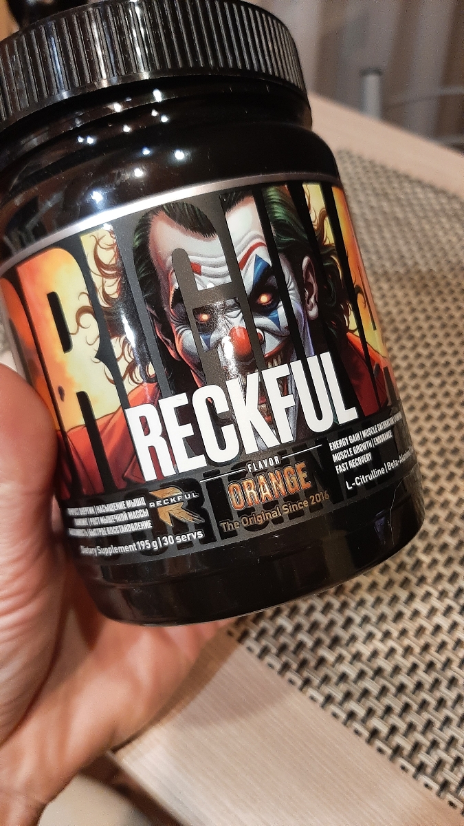 Вторая заказанная банка, 3башит как надо, но никому не советую к постоянному ( долговременному ) приёму, теряется эффект, сносит крышу, нарушается сон, а за ним и рассудок. Больше 1.5 скупа кидать не советую никому, отходняки колоссальные и вы об этом горько пожалеете. Свою функцию выполняет на всё 120 процентов, крайне рекомендую к покупке если вы таки решились на предтрен и знаете зачем он вам нужен, и нужен ли вообще. Безоговорочное качество, спасибо команде Reckful. Всем продуктивных тренировок.