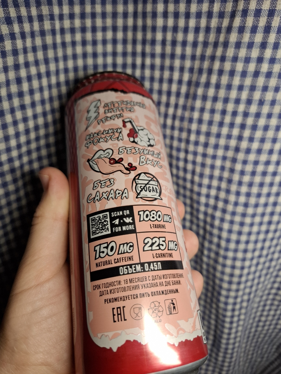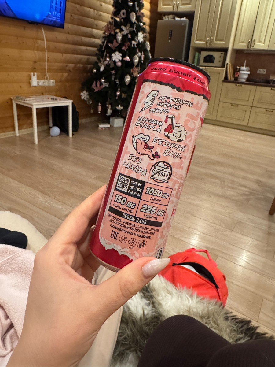 Очень вкусный энергос, по составу топчик, но единственное - чуть переборщили с сахаром во вкусе, как будто не клубника а клубничный леденец Под конец банки уже приедается, а так топчик