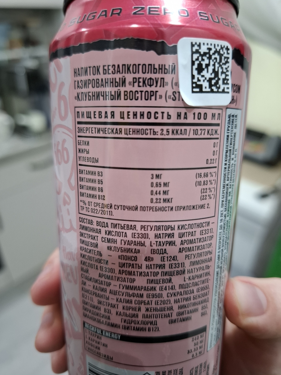 Вкуснота! Годнота! Клубничный энергетик ни разу не пробовал. Вкус легкий, не резкий. Не долбит в рецепторы жестким ароматизатором. Пьётся легко. Для бодроты в дальней дороге самое оно! Энергос - топ! Рекфул - топ!????