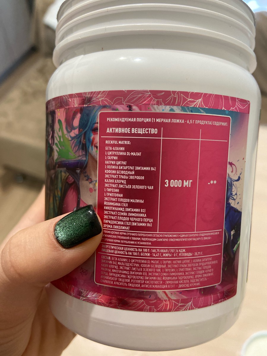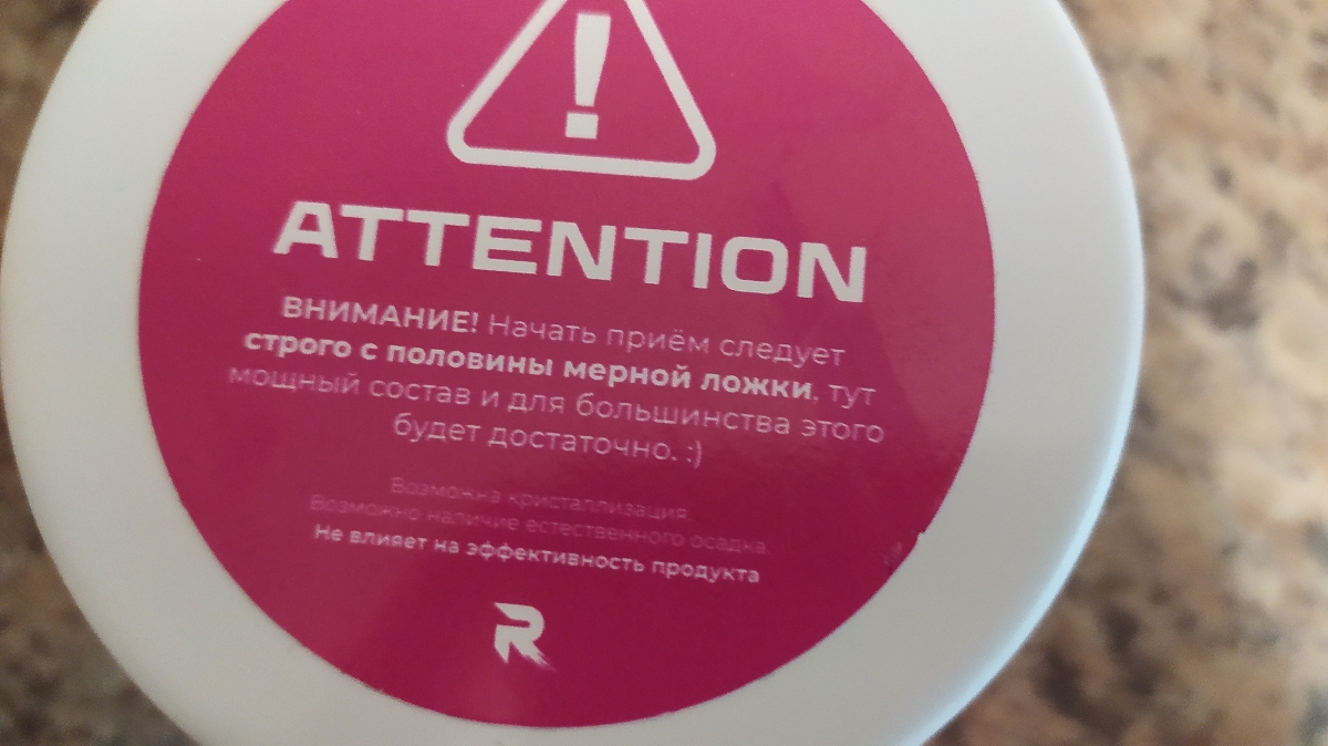 Когда утром тяжело собрать себя или предстоит тяжелая тренировка, обычно использую этот предтреник. Мне нравится, но дозу нужно подбирать для каждого индивидуально. Кому-то будет достаточно треть ложки, кому-то достаточно половины, а кому-то целая. Лучше начинать с небольших доз, чтобы не переусердствовать и вместо полноценной тренировки не получить высокое давление и дискомфорт. Сняла одну звезду за доставку в этот раз. Чёрный скотч, которым была замотана банка, испачкал мою столешницу, и остался на банке. Теперь каждый раз нужно думать, чтобы не поставить банку на столешницу, потому что потом приходится оттирать столешницу, остаются чёрные следы от снятого скотча. Иначе упаковку было не снять. Упаковка отвратительная в этом точно надо что-то менять.