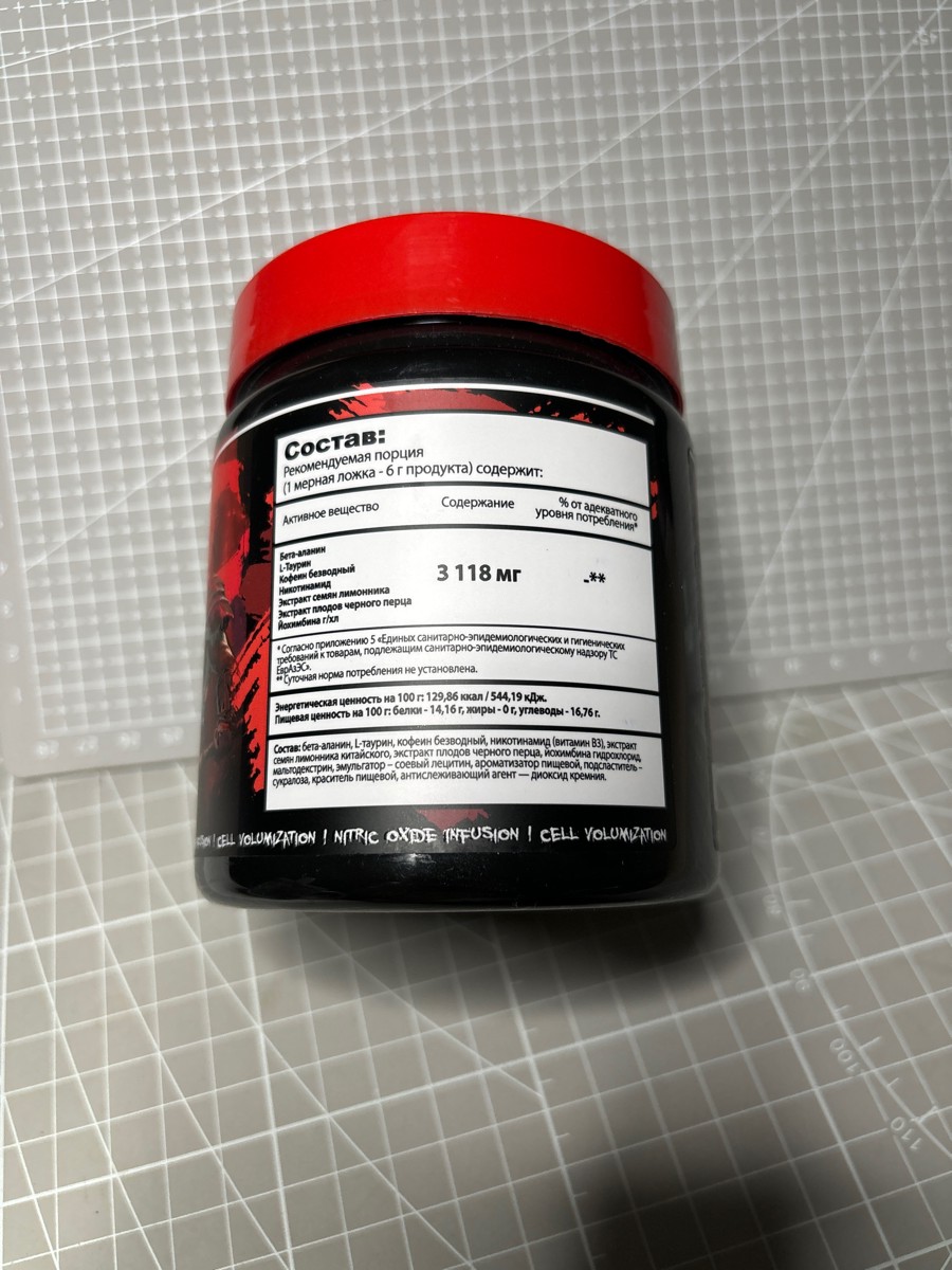 ну что ж, приступим.. Выпил сначала, примерно, 0.4 скуба на работе (засыпал на ходу прям) показалось, что не берет. спустя, примерно, 30 минут, выпил ещё половинку и понеслась).. Покалывания по телу особо замечены не были, энергия накатывает не сразу, а спустя мин 30. Цнс однозначно угнетает, шизоидам с паническими атаками как у меня советовал быть осторожными. Опыт с предтренами разных фирм имею давно. Проверю как он действует в спортзале на днях, но сон однозначно перебивает и чувство энергии точно даёт. Поставил пятерку. Единственный момент, на который стоит обратить внимание продавцу- не совпадающие споки годности на банке и коробке.