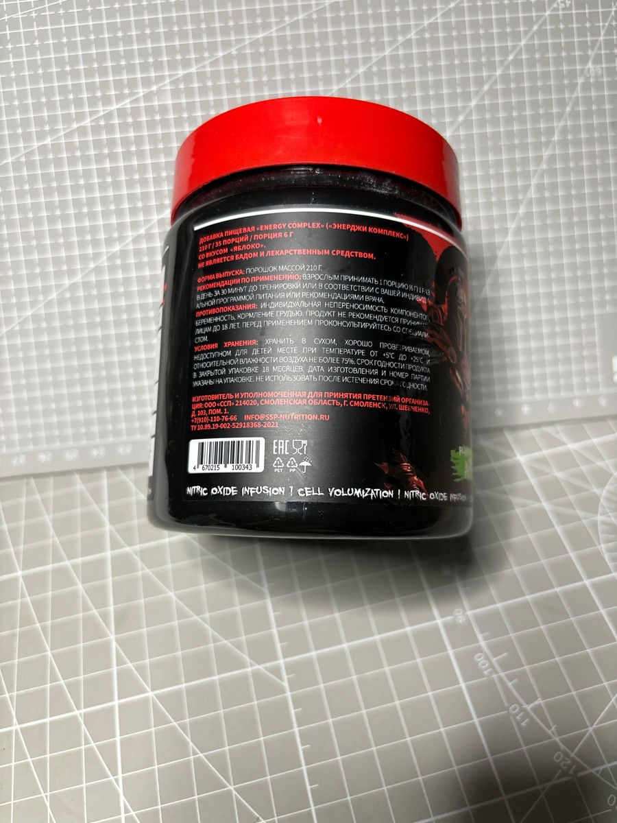 Хороший предтренировочный комплекс. Брал со вкусом яблока с надеждой на жуткий химозный вкус, открыв банку и просто понюхав - понял что вкус очень даже яблочный, после приёма остаётся приятный мятно-яблочный привкус на языке. Упаковка на уровне, упаковочная плёнка не была повреждена. По дозировке я лично не понял, написано 6 грамм, хотя ложечка лежит 10 грамм, но я как человек который пил подобное, 4 грамма разницы - я не заметил. Друзья которые его пили в первый раз, дозировка +- 6 грамм была достаточно. После приёма одной ложки (10 грамм) ощущения поступления кофеина в организм ощущается после 10 минут после приёма, особо диких ощущений чтобы поднять веса х3 больше рабочего - небыло. Итог таков: Хороший, вкусный, рабочий, за такие деньги очень даже приемлемо