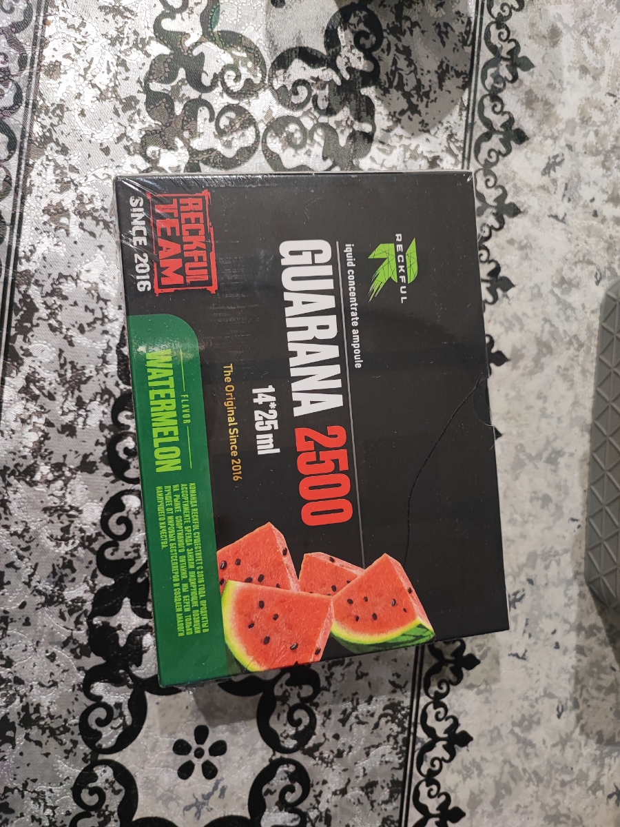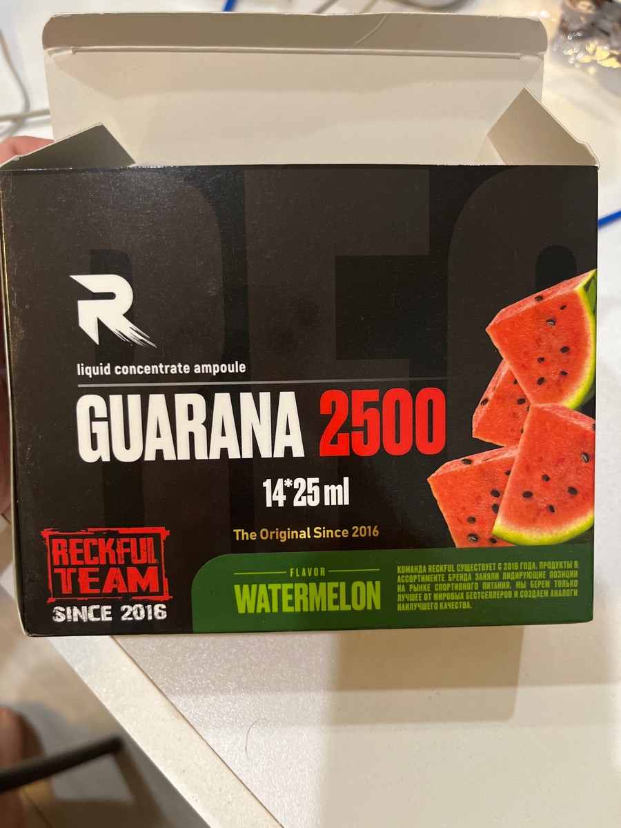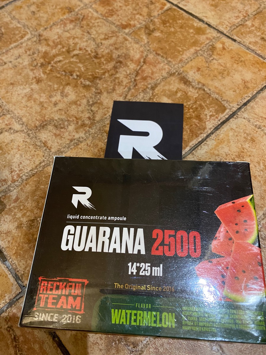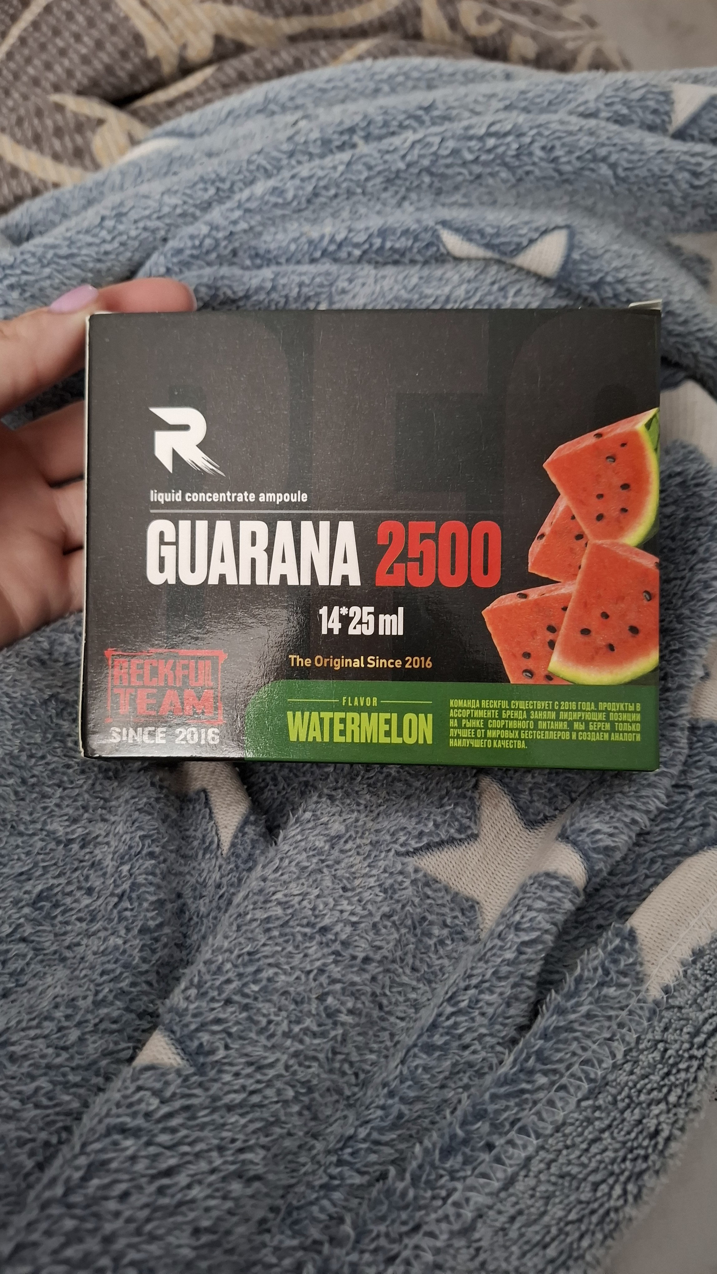 RECKFUL Guarana 2500 Liquid Ampules — ваш идеальный помощник для повышения энергии и концентрации с приятными вкусами: арбуз, ананас и вишня! Этот мощный энергетический напиток создан на основе натурального экстракта гуараны, известного своими стимулирующими свойствами. Каждая порция энергетика содержит 2500 мг экстракта гуараны. Guarana extract в связанной форме содержит активное вещество кофеин, которое способствует расщеплению жировых запасов, благодаря чему является одним из самых популярных термогеников. Ускоренное высвобождение свободных жирных кислот в кровь во время физической нагрузки сберегает запасы гликогена в мышечных клетках, повышает работоспособность и выносливость, увеличивает жиросжигательный эффект аэробных тренировок. Идеально подходит для спортсменов, студентов, геймеров и всех, кто ведет активный образ жизни. Попробуйте гуарану 2500 в жидких ампулах от Рекфул и ощутите прилив энергии, необходимый для достижения ваших целей!