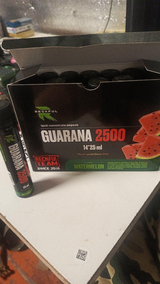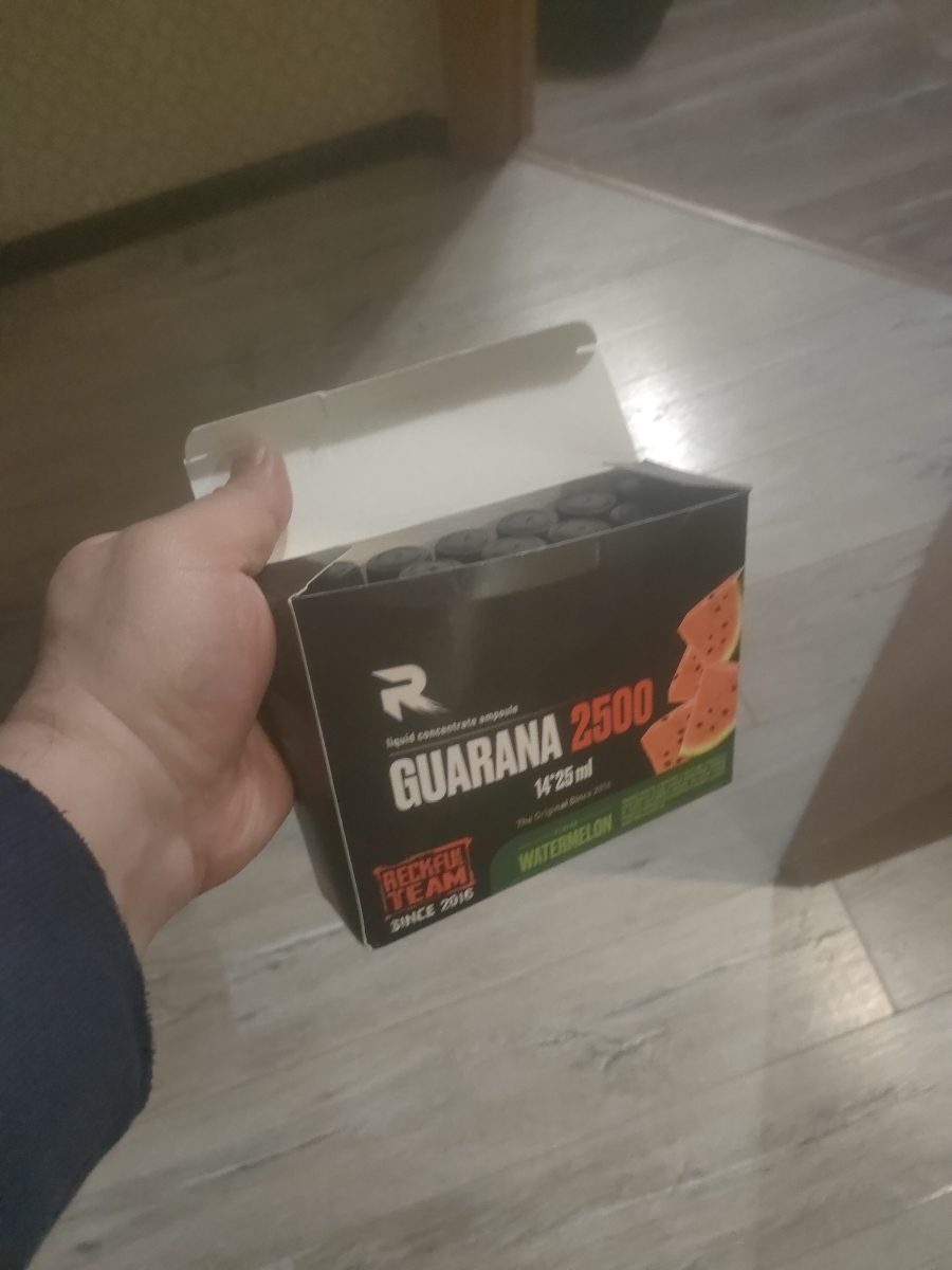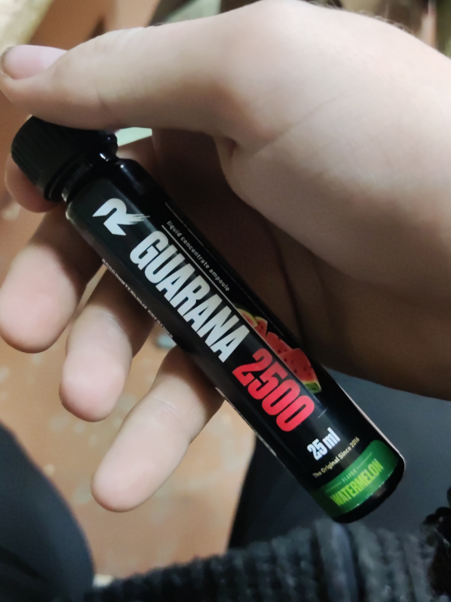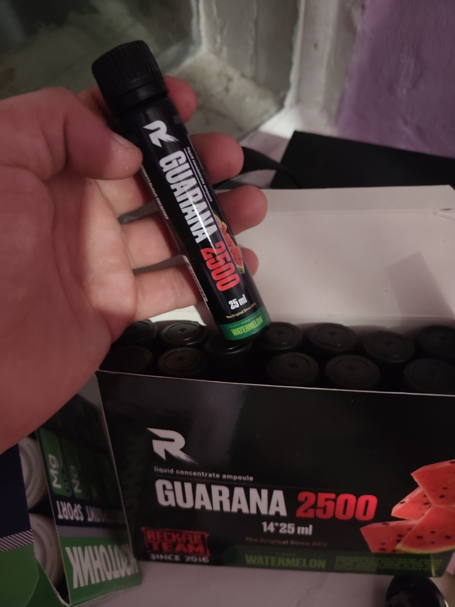 Не первый раз пользуюсь этим брендом и этой гуараной 2500. Могу сказать очень действенное средство👍🏻🤟🏻 выпил, запил водой так как мне кажется приторно. Размялся 10 минут и понеслась… часа так 2,5 каждое занятие. Чисто/подконтрольно👍🏻💪🏻 Благодарочка производителю, а также Озон за доставку👍🏻