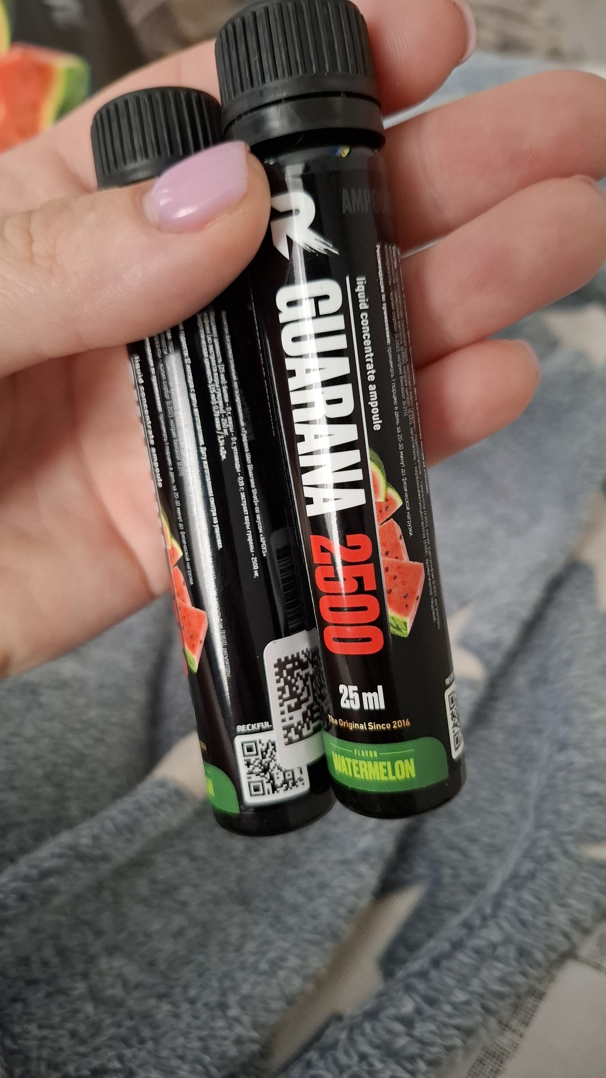 Хорошие шоты. Вкус арбуза очень яркий, но горчит на послевкусие. От данного бренда имеется несколько продуктов, таких как предтрены, пампилка и теперь ещё гуарана. Когда надо где-то потребить на улице, беру с собой данный шот, заменяет предтрен. Вообщем, рекомендую данного производителя и данный продукт.