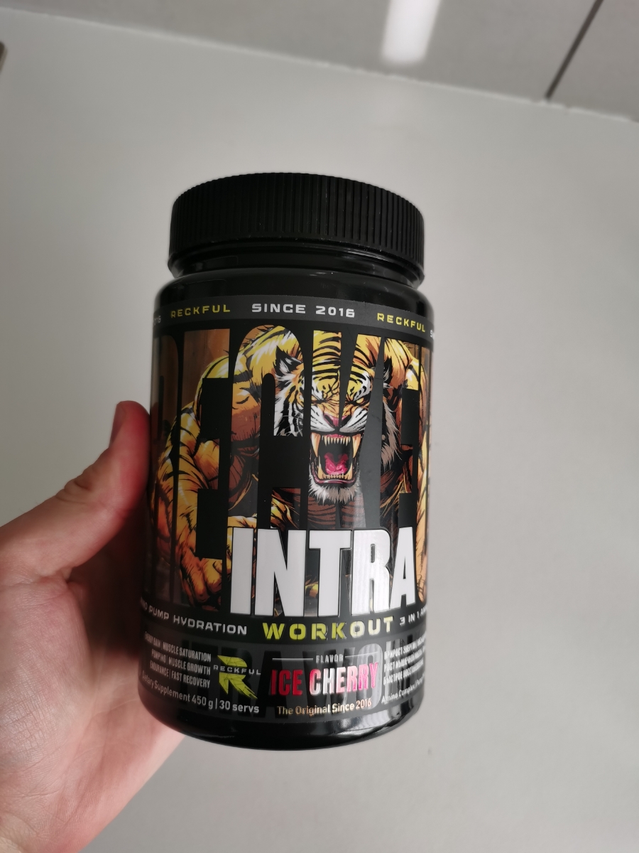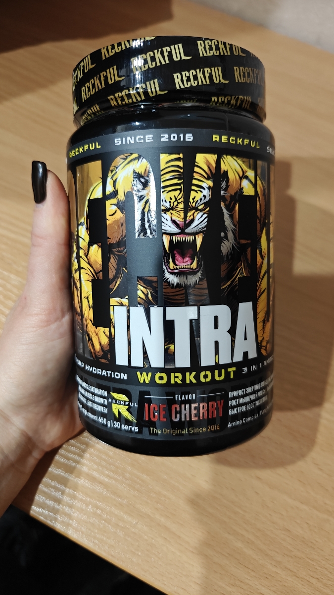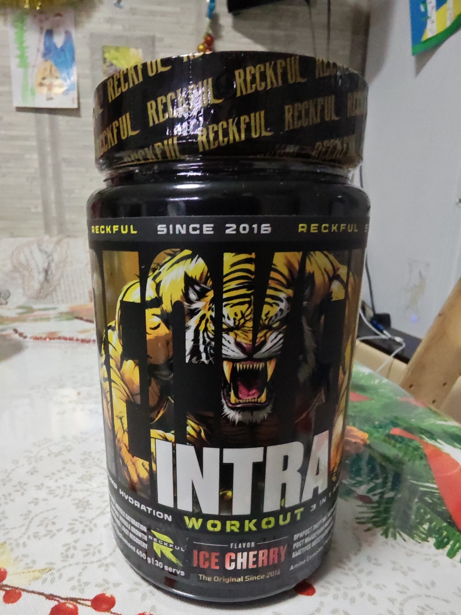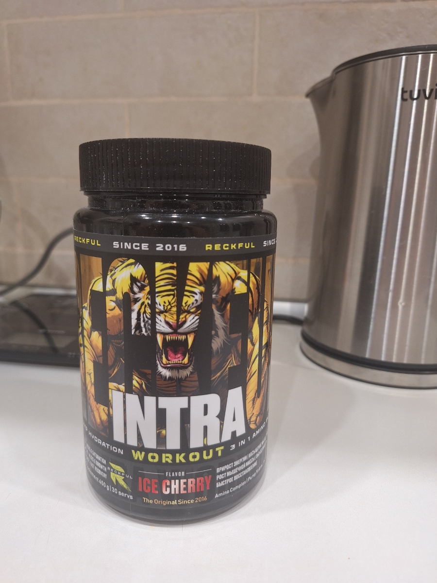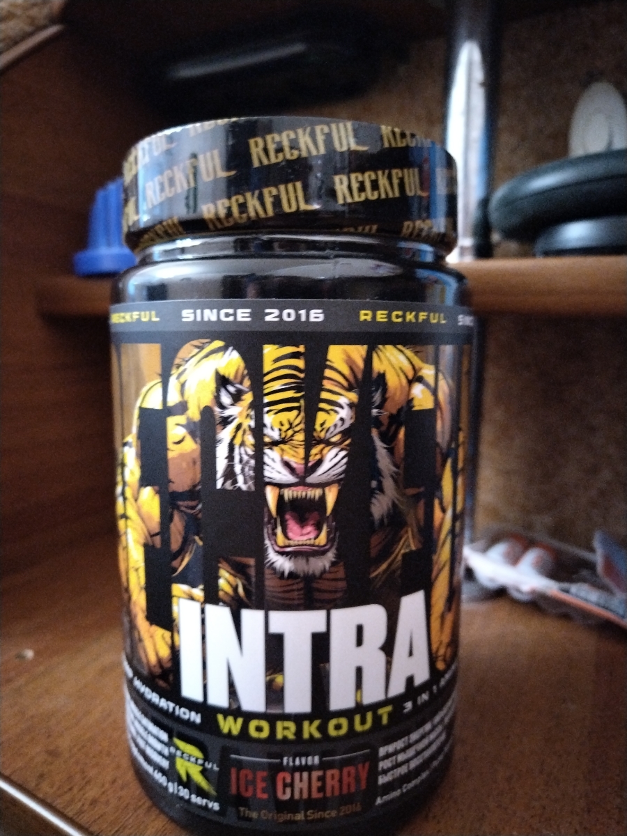 Предтрен в порошке Reckful Intra Workout 450 гр со вкусом ледяной вишни.