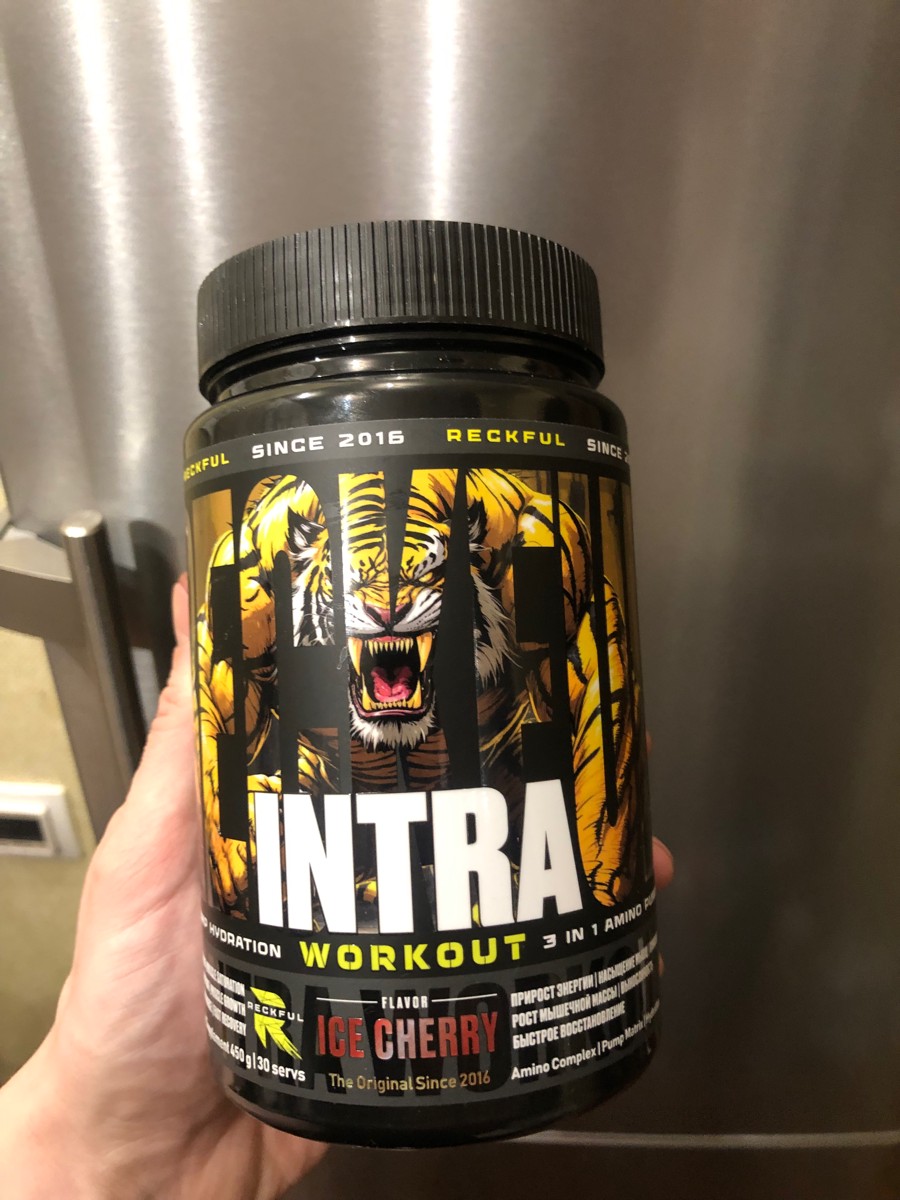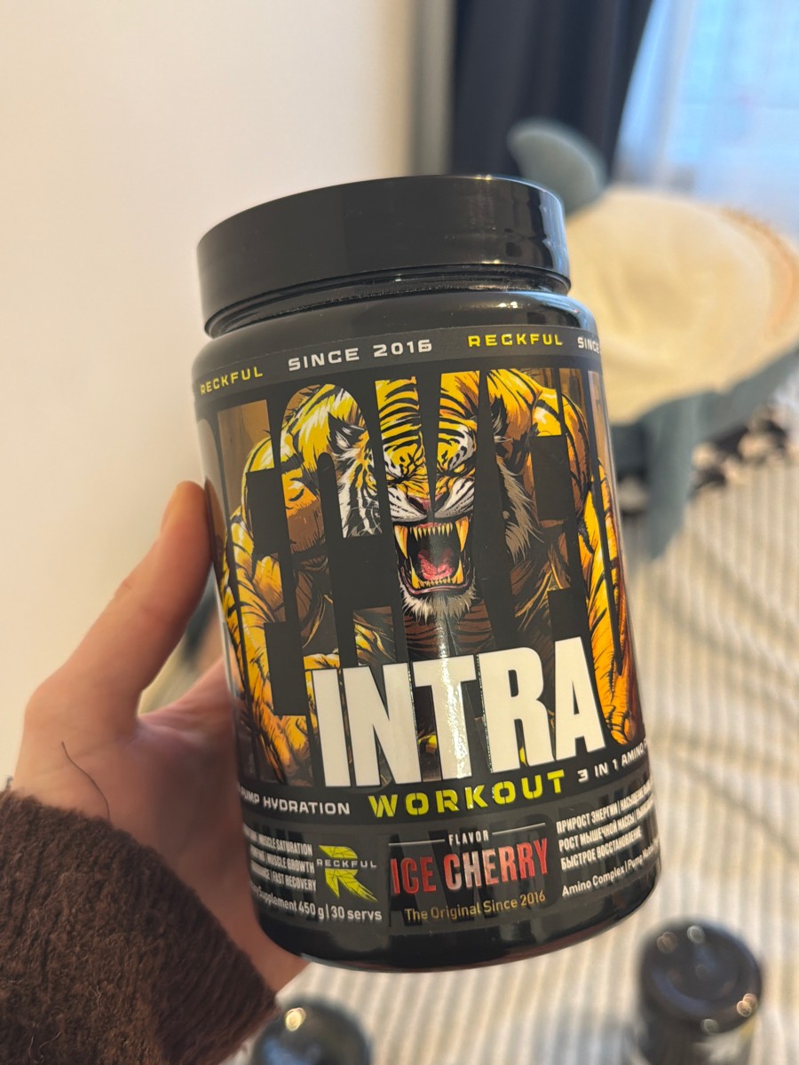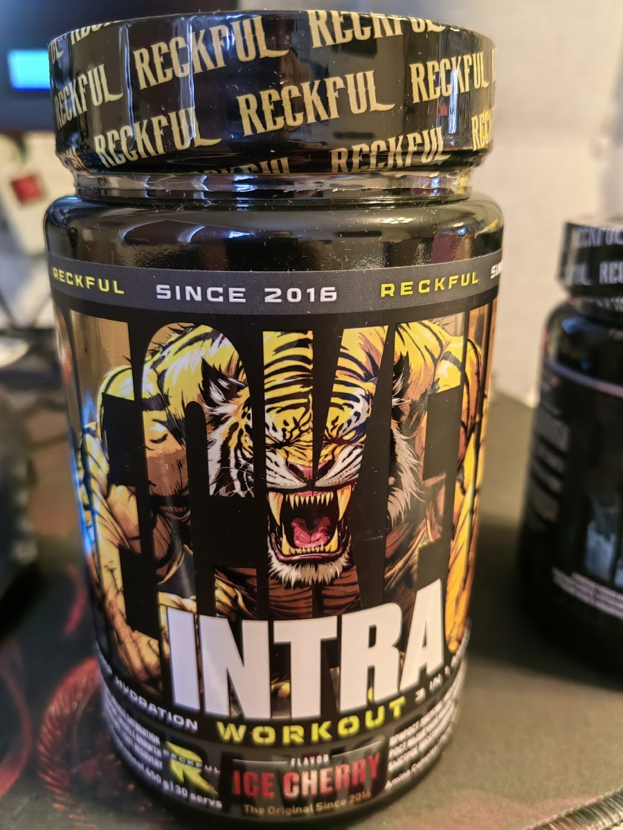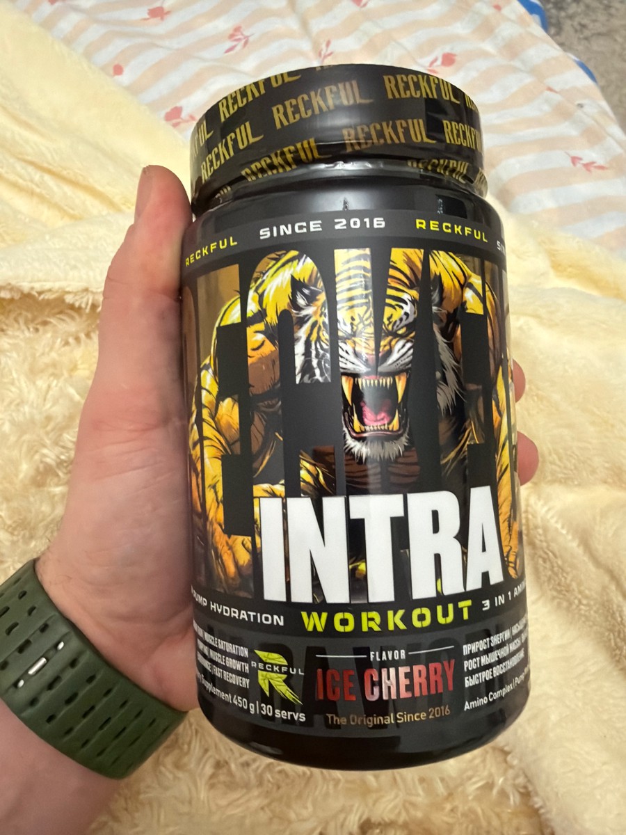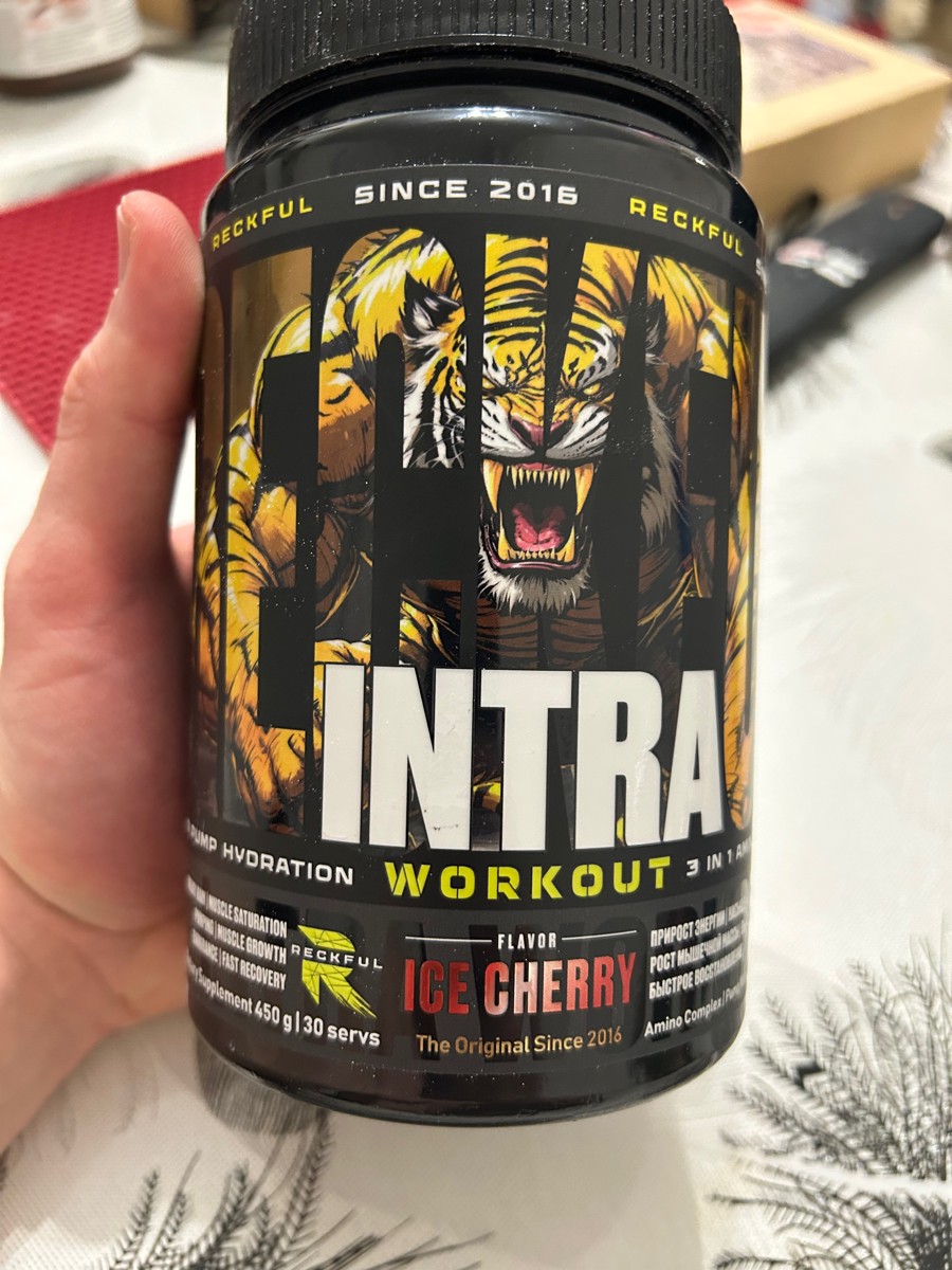 Предтрен в порошке Reckful Intra Workout 450 гр со вкусом ледяной вишни.