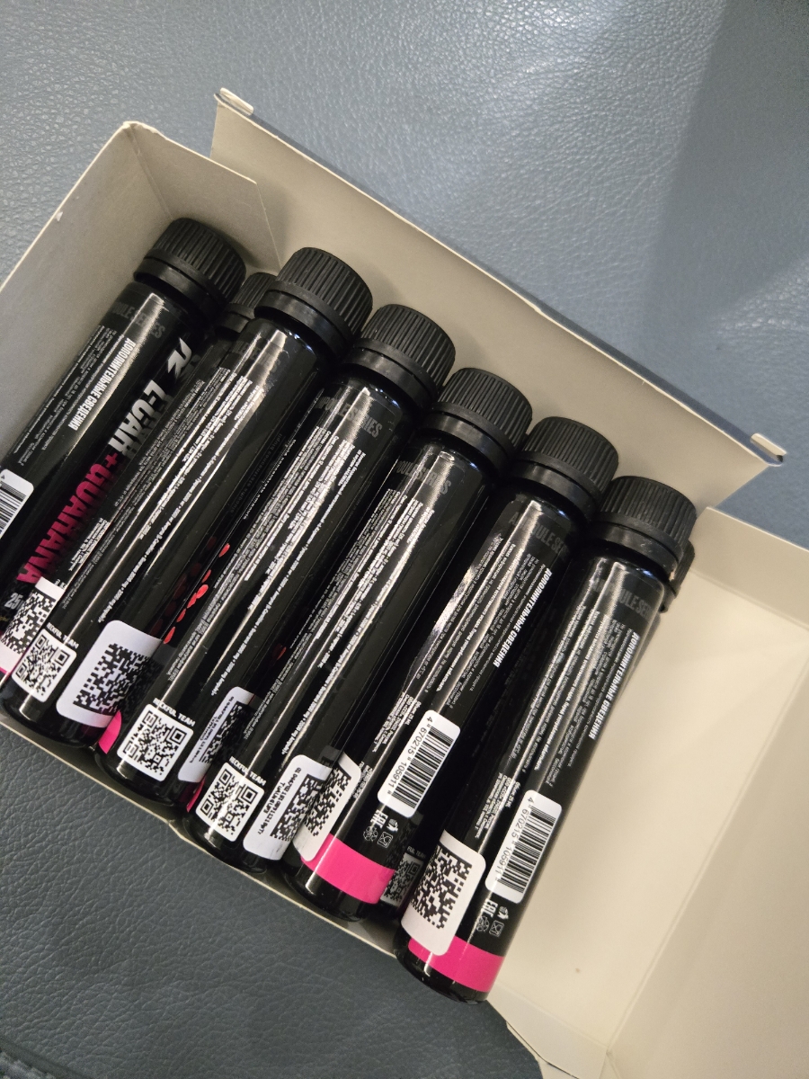 Хорошо запаковано. Все ампулы на месте. Увидела в рекомендациях тренера, поэтому в качестве не сомневаюсь. от коробки, от закрытых ампул вкусно пахнет малиной