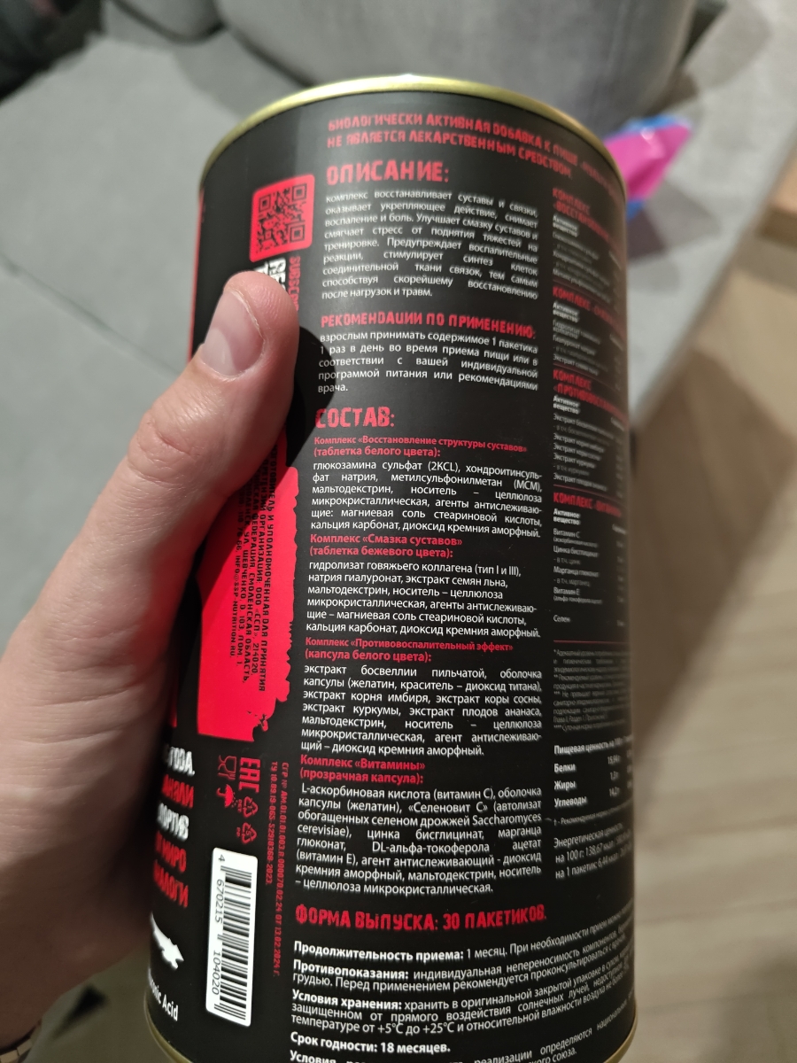 Все запечатано, срок годности хороший. Взяла по отзывам, поддержать суставы. Спасибо