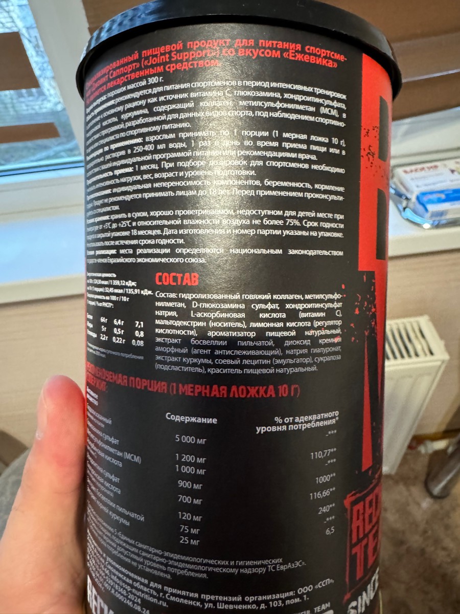 Только начал пить. Результат от таких продуктов есть(и заметен) только после 6-8 недель приема. А не "после трех дней всё перестало болеть". Доставка в срок. Упаковка просто огонь. Лучшая упаковка на что-либо, что я получал на маркетплейсах. Сама банка упакована в картонную коробку. Ну а метеллическая мембрана под крышкой..такое врят ли будут подделовать. Тк гиморно и дорого. Есть доверие к содержимому. Раньше брал их предтрен. Однозначно рабочий для меня. Поэтому, после получения Джоинт Саппорт сомнений в содержимом нет. Рекомендую 100%. Особенно учитывая количество подделок на маркетплейсах на сегодня.
