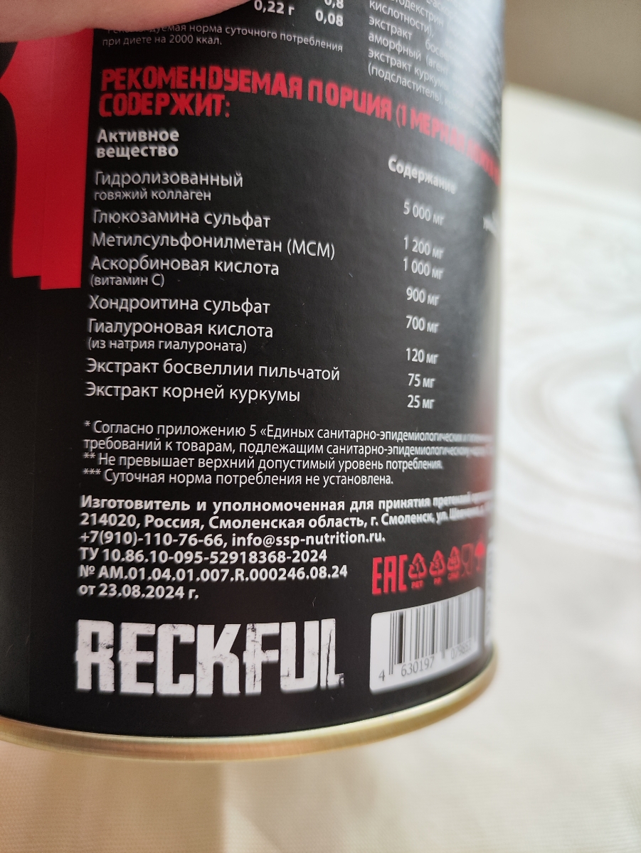 Фото к сожалению нет, пишу отзыв сильно позже. В общем болел коленный сустав , так как изношен и к сожалению ранее я ему не уделял должного внимания. Пропил комплекс , супер . Советую ещё взять к нему куриный коллаген Dc 2 и вообще будет супер связка. Колено не болит , эффект супер. В общем советую, рабочая добавка ????