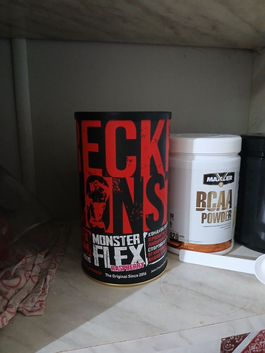 Ставлю 5 звёзд только за вкус и то что размешивается отлично, без осадка. сделана попытка копии Animal Flex, но порошок доставать из этой банки не удобно, острые края банки. ну и мне совсем не помогло