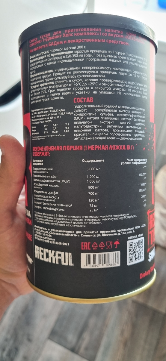 В общем, не первая моя банка! Продукт реально работает, имеется проблема с коленями, после пропитого курса дискомфорт, хруст😁 и боль уходит. Всем советую, бренд достойный не уступает иностранный аналогам, приятно что такое делает в нашей стране! Пить можно, пить вкусно, хорошая аромка!