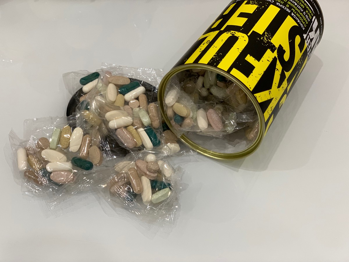 БАД Монстер Пак содержит более 50 ингредиентов, включая витамины, минералы, аминокислоты, антиоксиданты, электролиты и другие питательные компоненты. Все компоненты поделены на 9 комплексов. Каждая из 10 таблеток/капсул содержит свой комплексный набор, что обеспечивает лучшее и более полное усвоение, что является преимуществом перед стандартными витамино-минеральными комплексами, где все компоненты находятся в одной таблетке/капсуле.