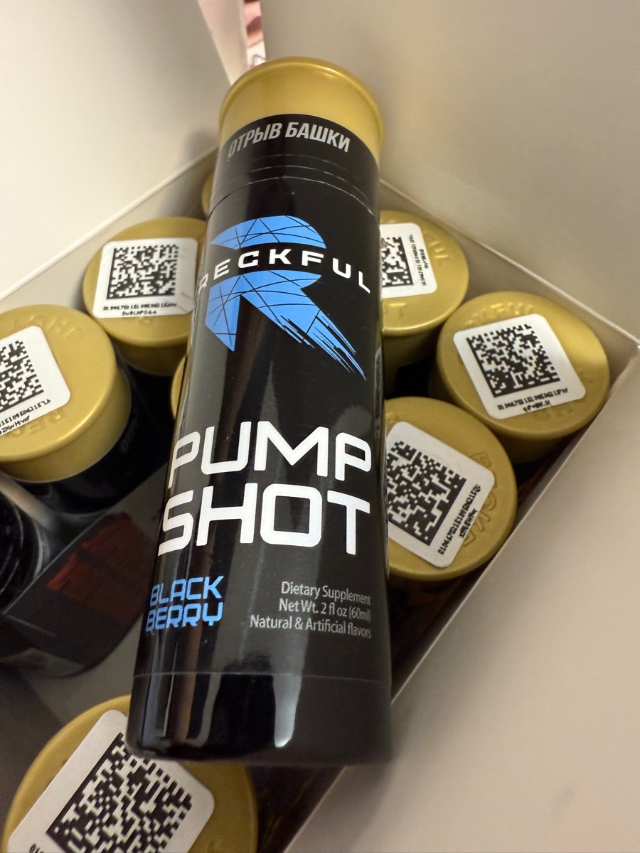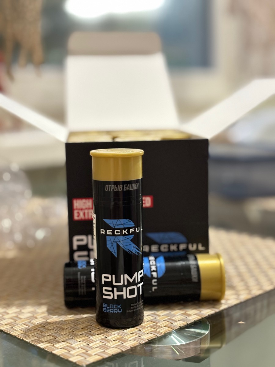 Reckful Pump Shot 12 ампул со вкусом ежевики. Мощный предтренировочный комплекс для заряда энергией и памп для мышц в удобном формфакторе.