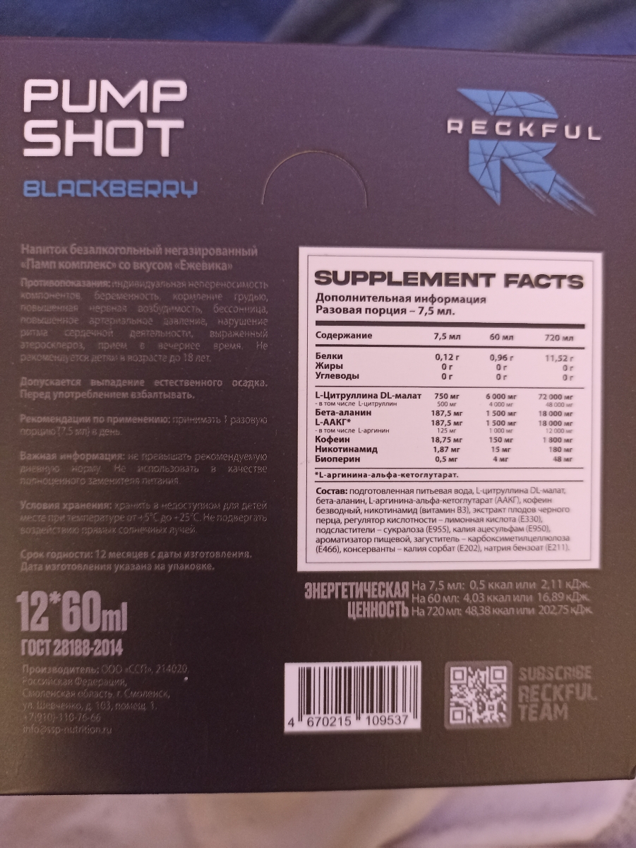 Этот продукт не нуждается в представлении!Бодрит жёстко как для зала так и для бассейна.Я конечно стараюсь не употреблять предтреники но иногда всё таки можно ???? Reckful удачи вам во всём !