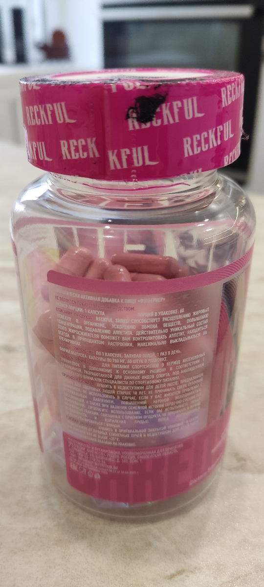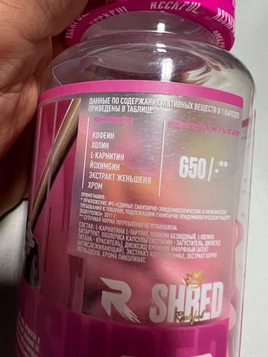 Количество капсул в упаковке совпадает с текстом. Первая неделю употребления чувствуется сразу, энергия так и прет. После эффект становится слабее. С 3-й недели пил по 2 капсулы: одну утром и одну часов в 5 (за 3 часа до тренировки). Даже с небольшим дифицитом калорий результат заметен. Жиросжигателем от Рекфул доволен. Через месяц окончания курса буду брать еще.
