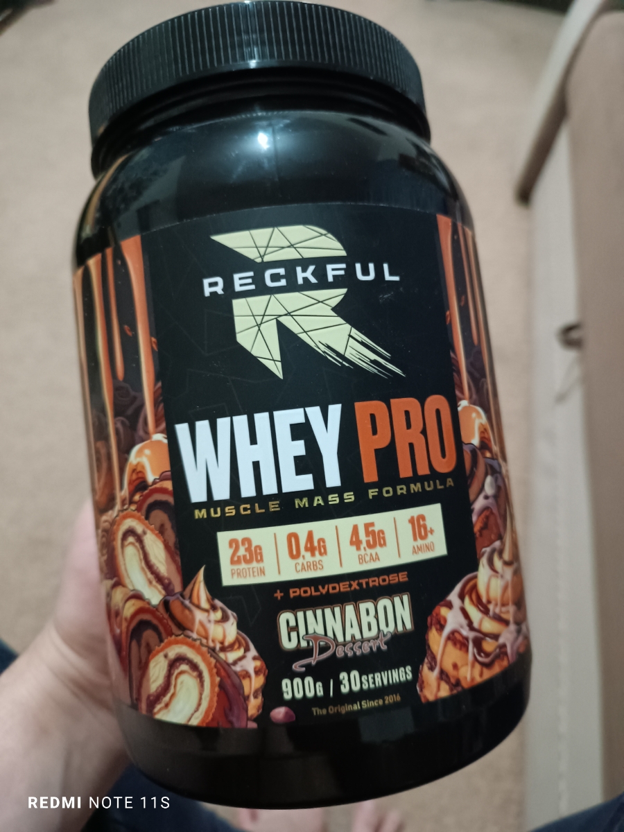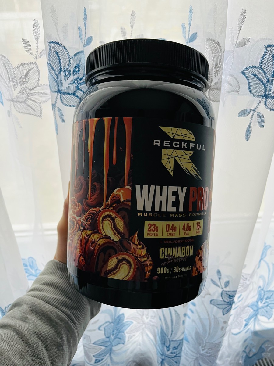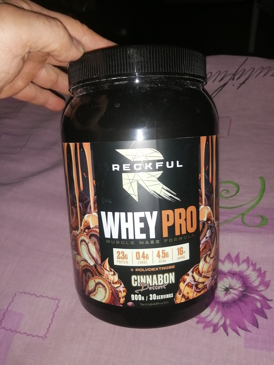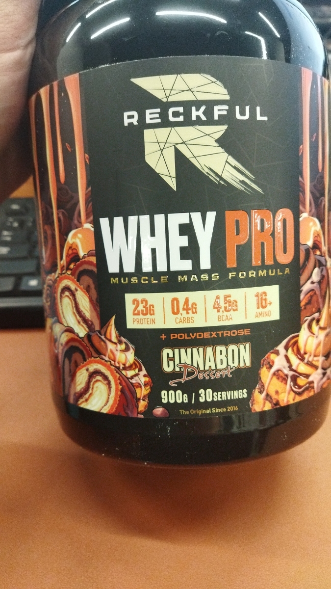 Reckful Whey Pro Protein 900 граммов со вкусом синабона — сывороточный протеин без добавления сахара и практически не содержащий в своем составе углеводы.