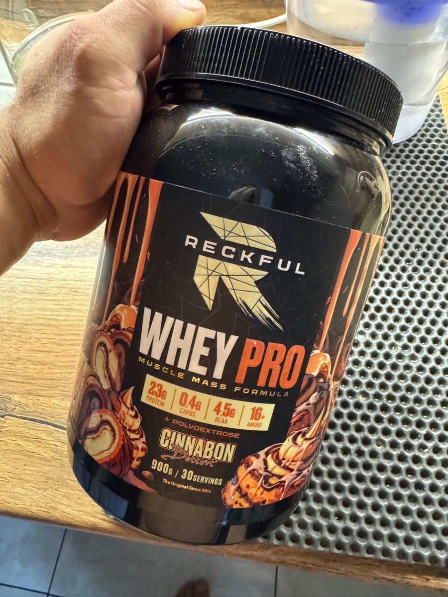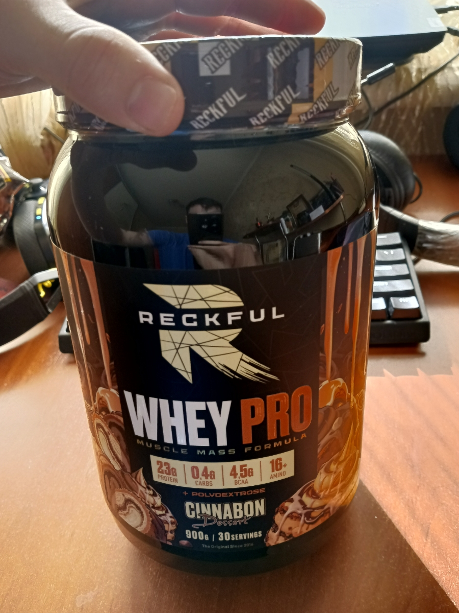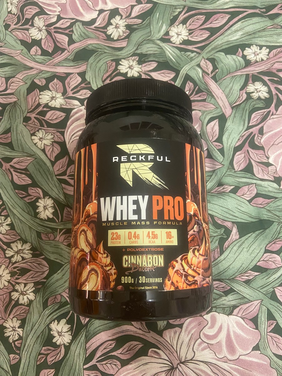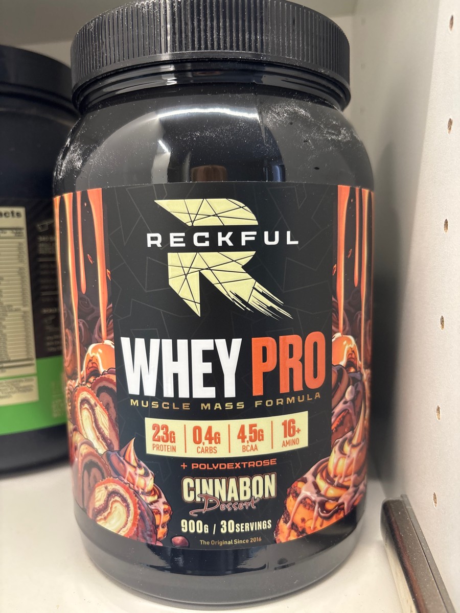 Reckful Whey Pro Protein 900 граммов со вкусом синабона — сывороточный протеин без добавления сахара и практически не содержащий в своем составе углеводы.