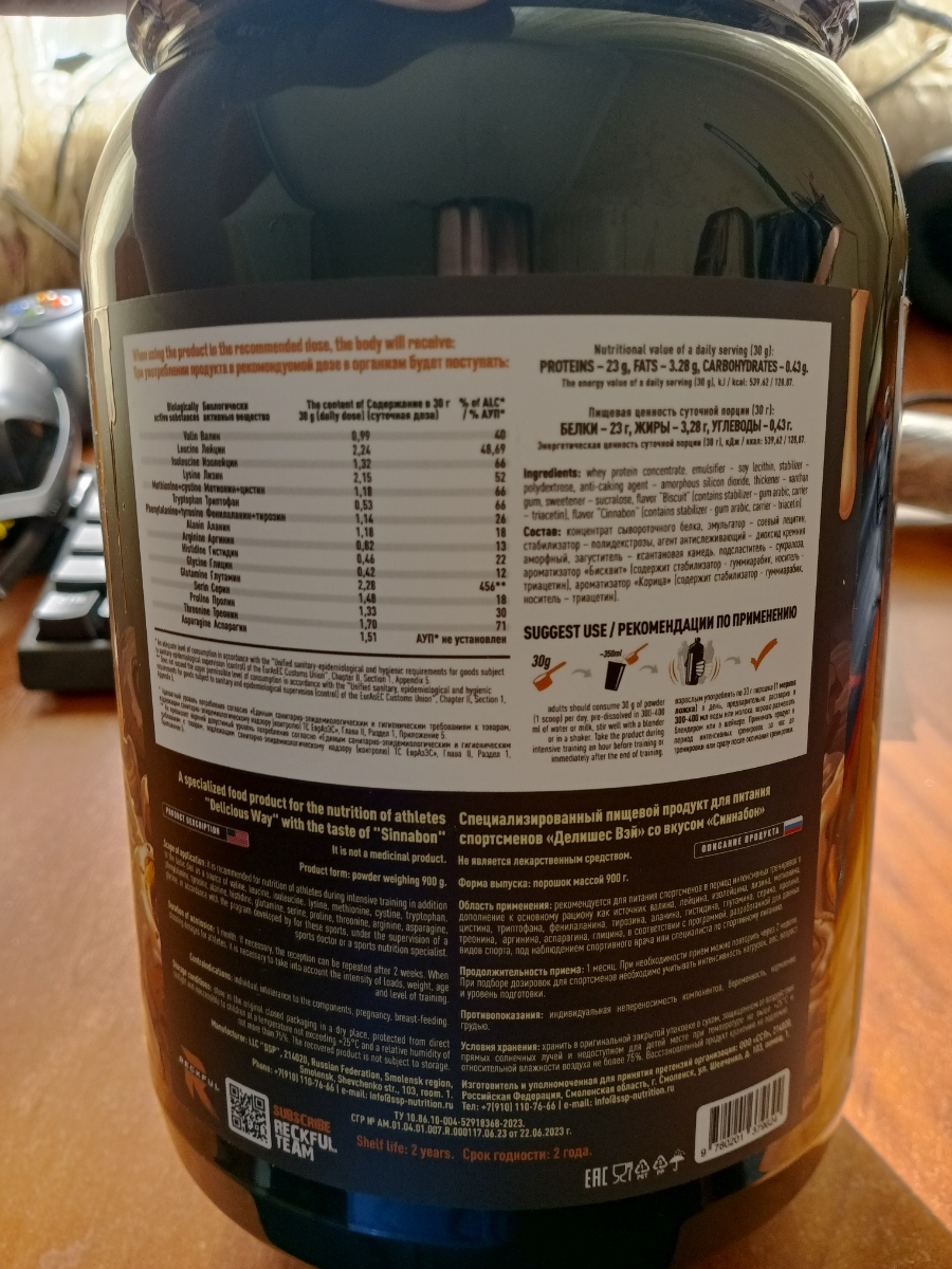 хороший протеин, без комочков, консистенция понравилась. Вкус очень сладкий, будьте готовы к этому. синнабон не почувствовал, просто приятное сладкое нечто)