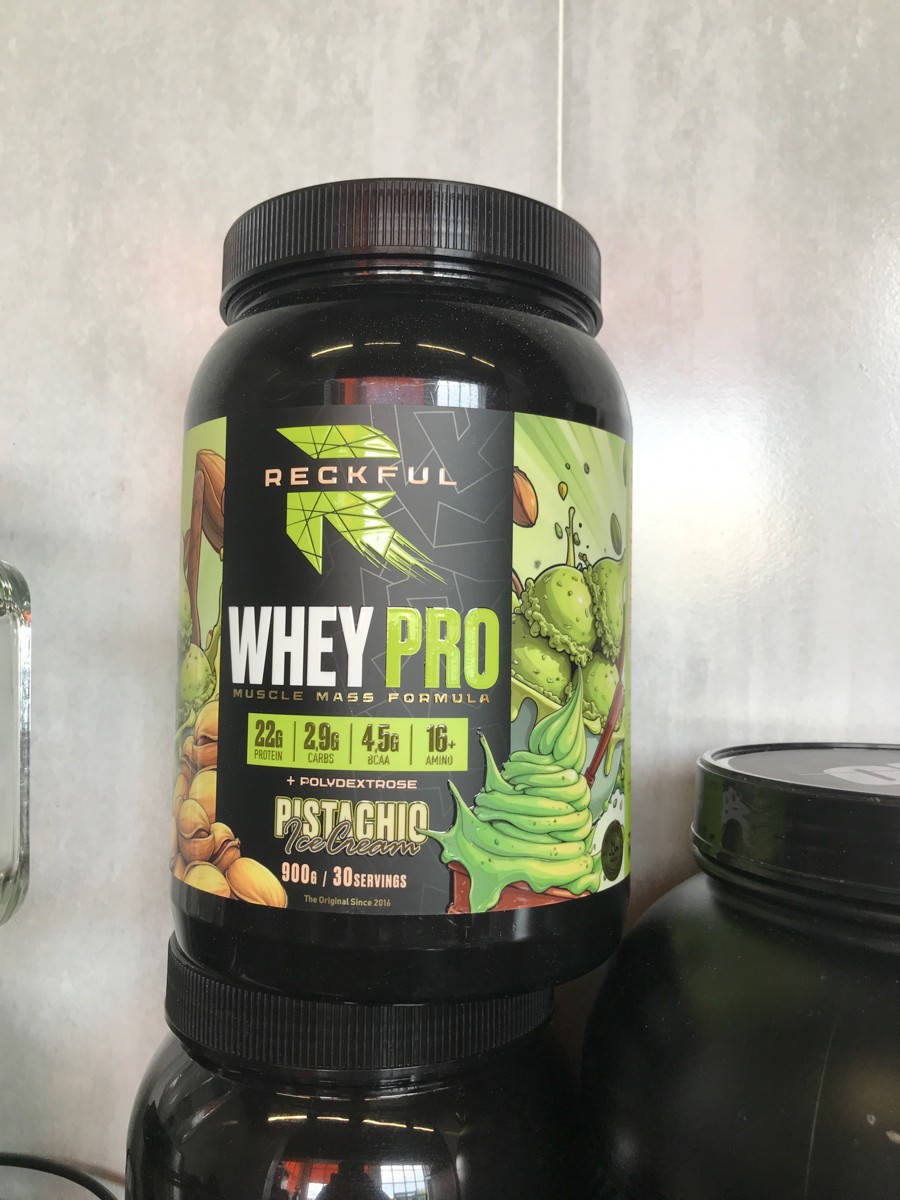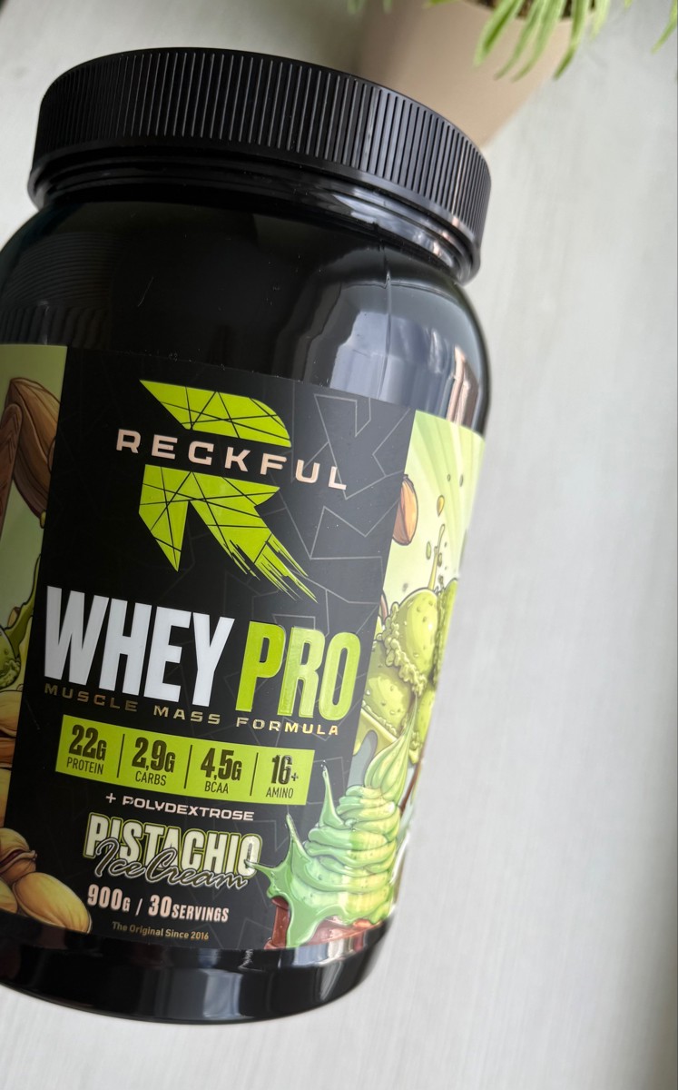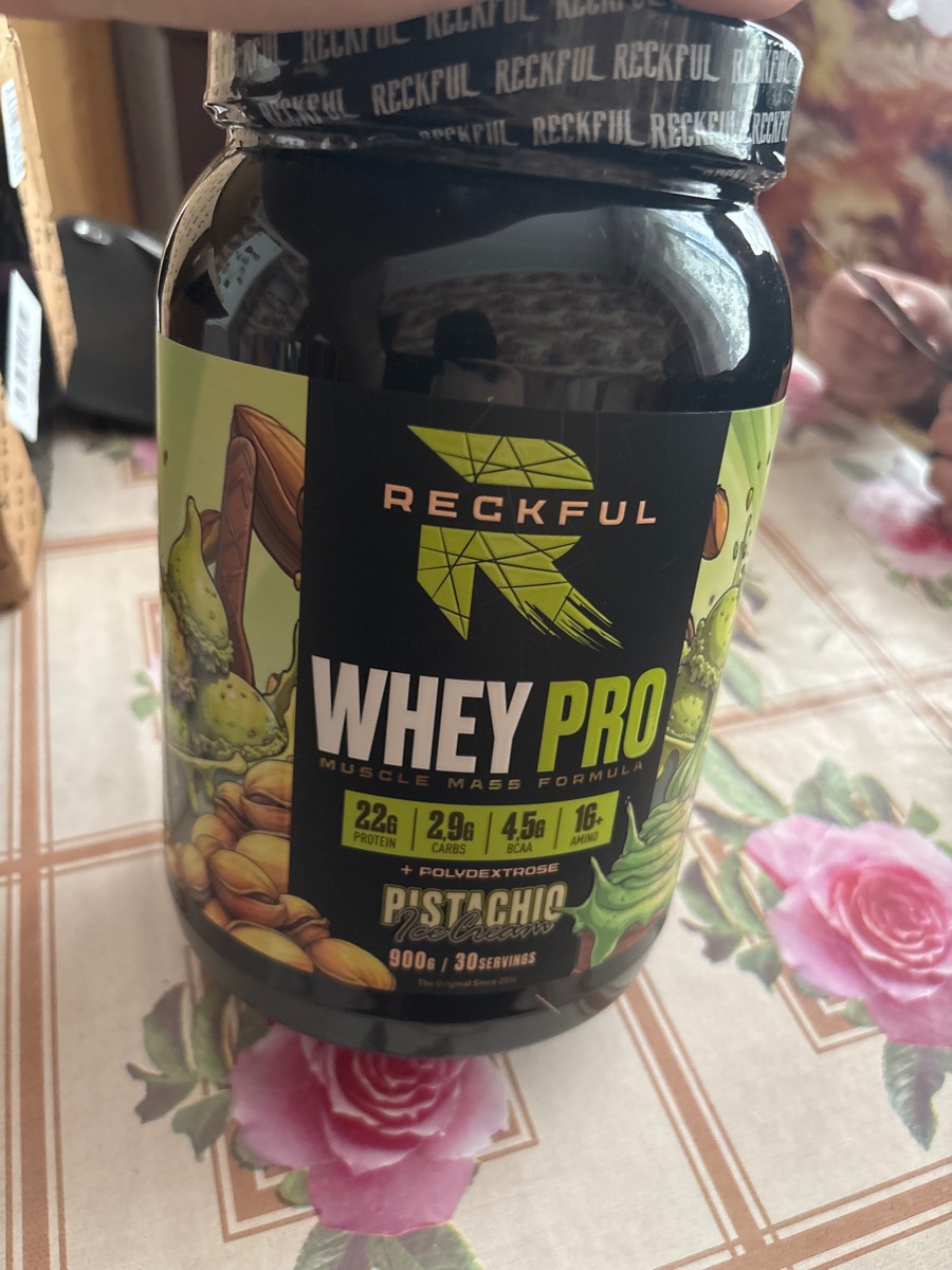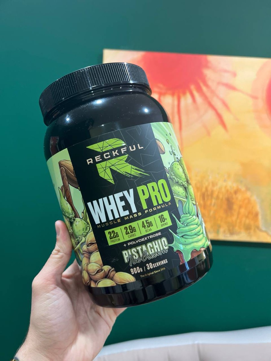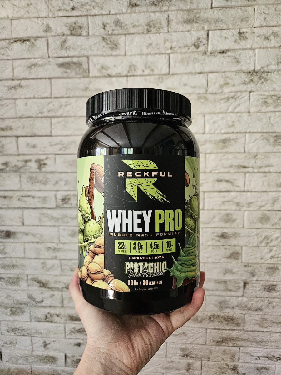 Reckful Whey Pro Protein 900 граммов со вкусом фисташка — сывороточный протеин без добавления сахара и практически не содержащий в своем составе углеводы.
