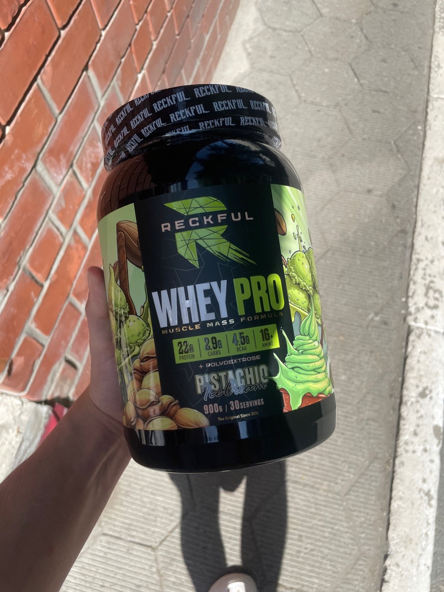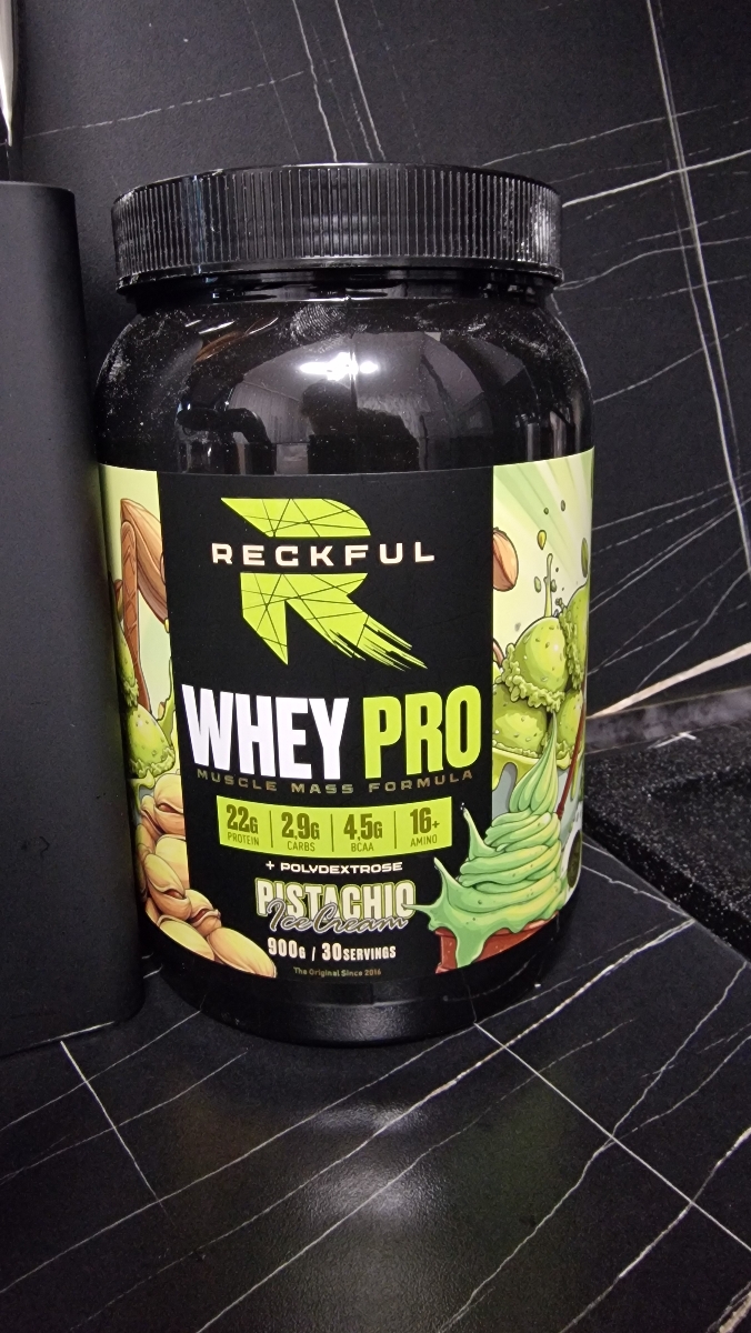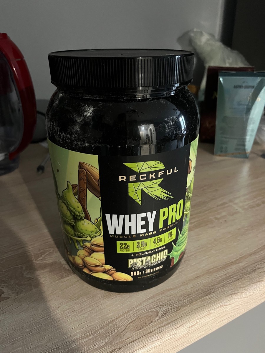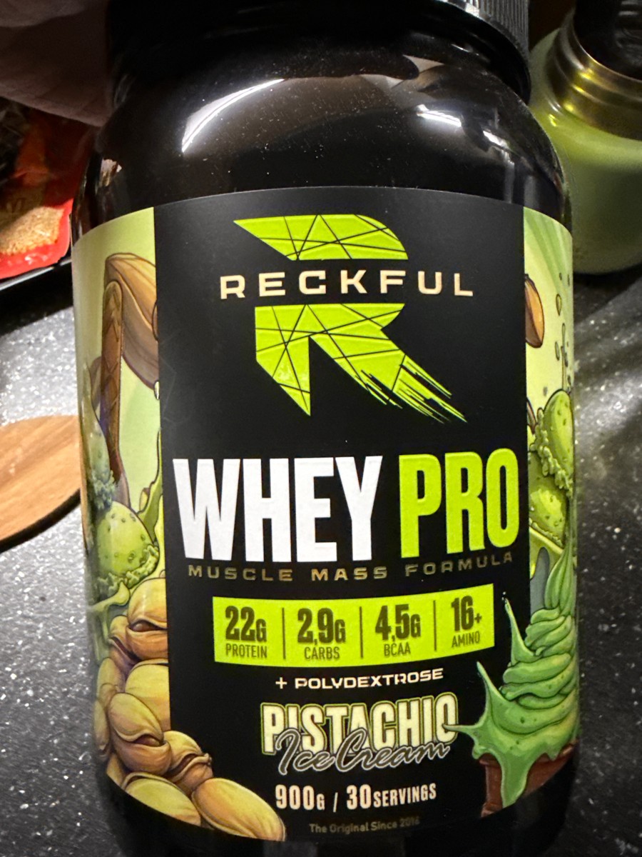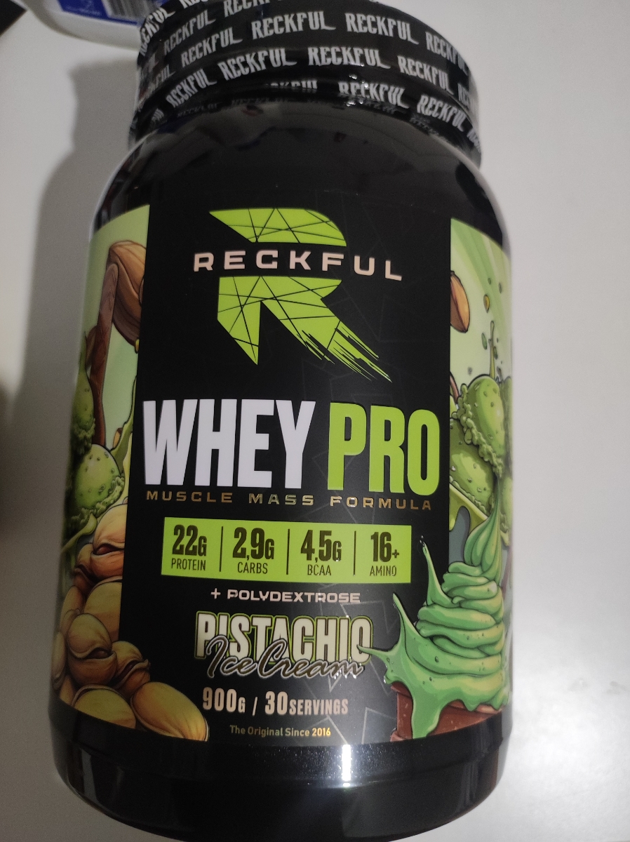 Reckful Whey Pro Protein 900 граммов со вкусом фисташка — сывороточный протеин без добавления сахара и практически не содержащий в своем составе углеводы.