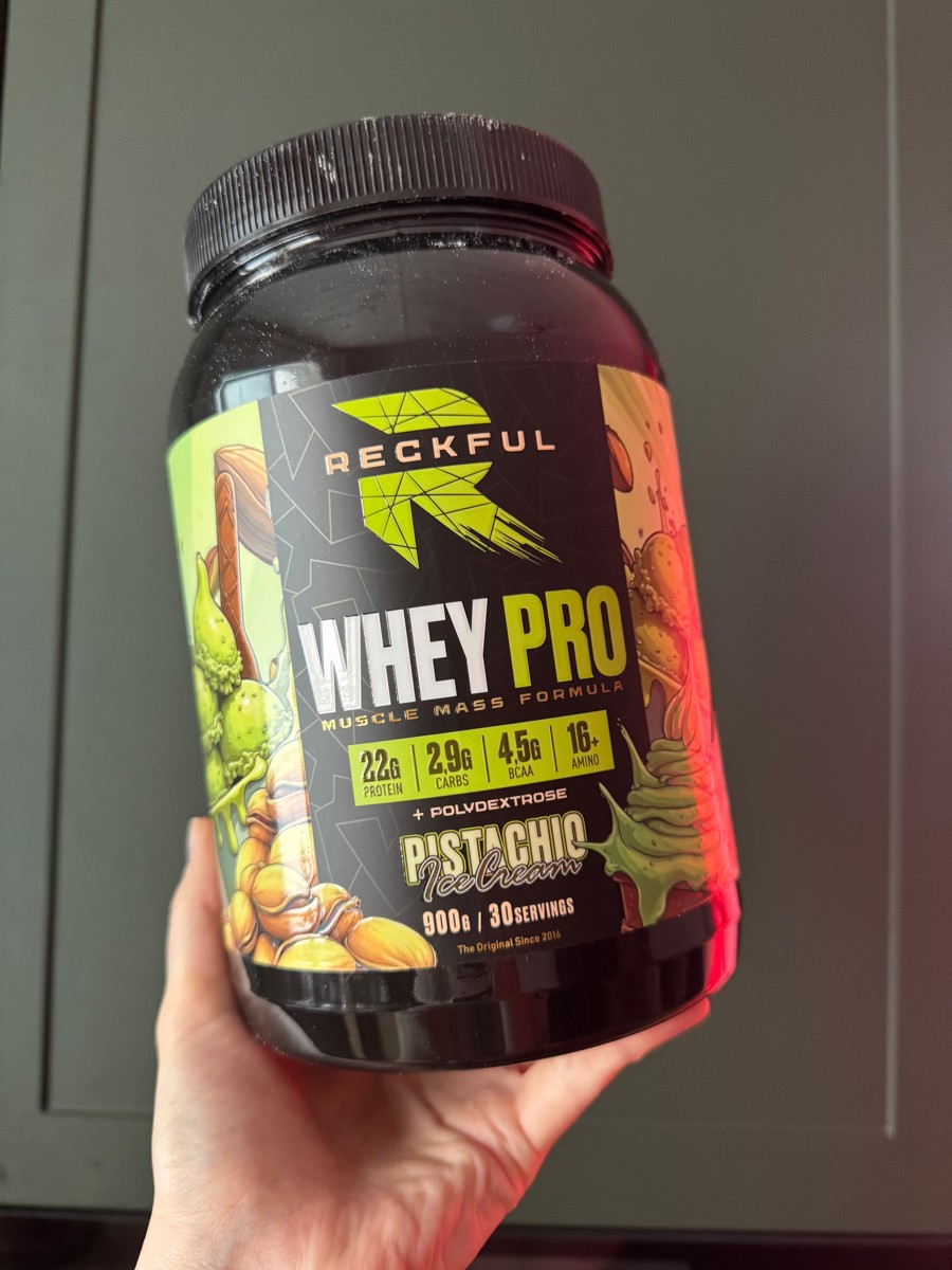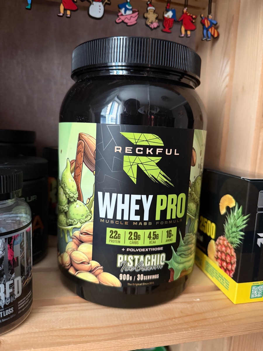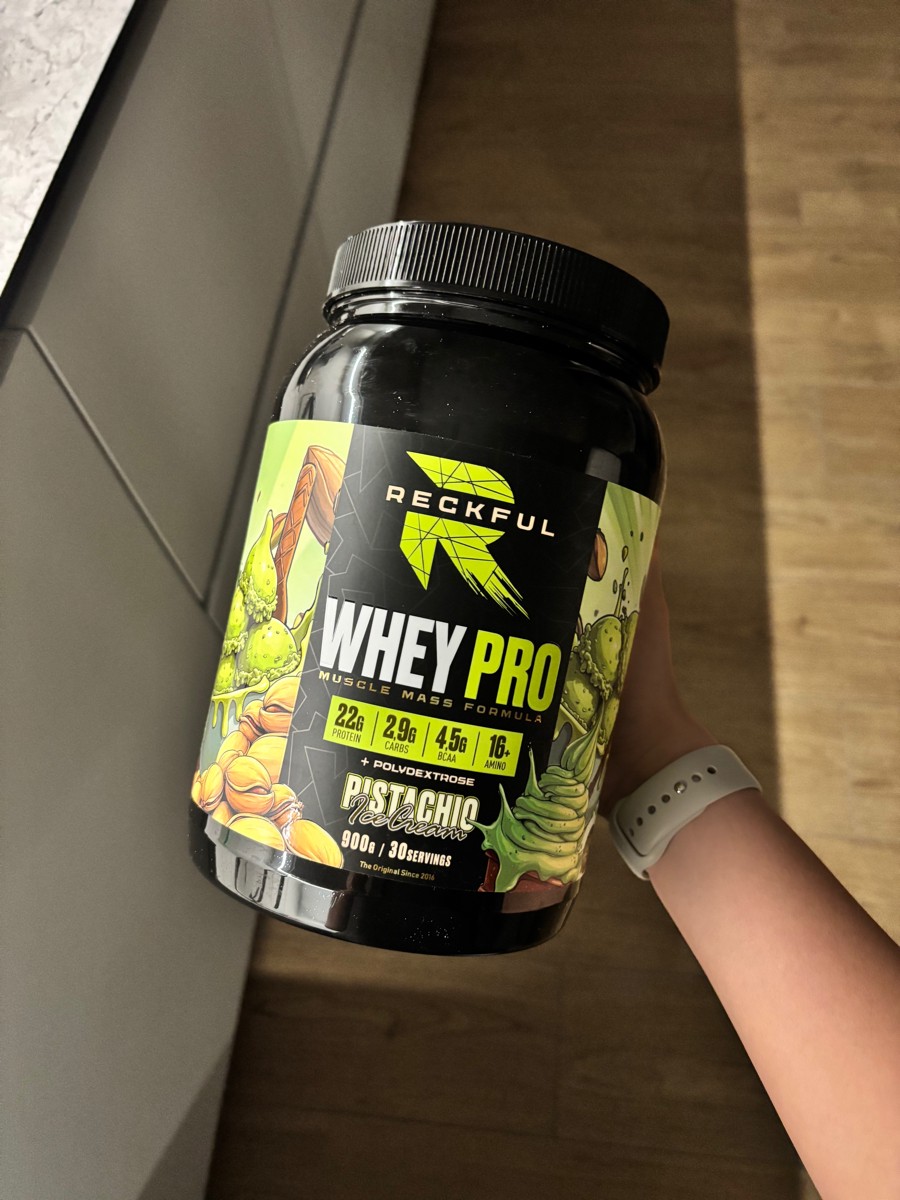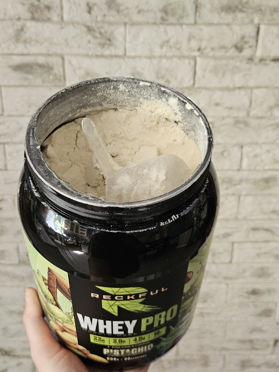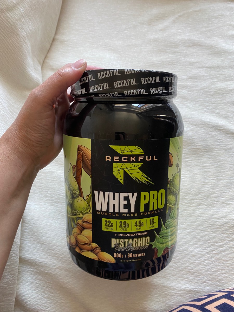 Reckful Whey Pro Protein 900 граммов со вкусом фисташка — сывороточный протеин без добавления сахара и практически не содержащий в своем составе углеводы.