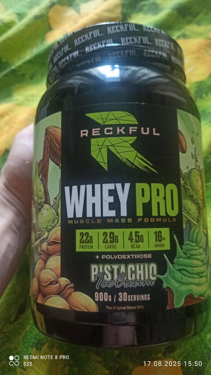 Reckful как всегда на высоте, надоели эти приевшиеся вкусы, типо ванильные или шоколадные, фисташка не то чтоб вау вкус, в основном больше к нейтральному(сама по себе фисташка не сладкая и не солёная), но не плохой. Цена почти как у премиум протеинов, судить вам качество+высокая цена или все остальное.