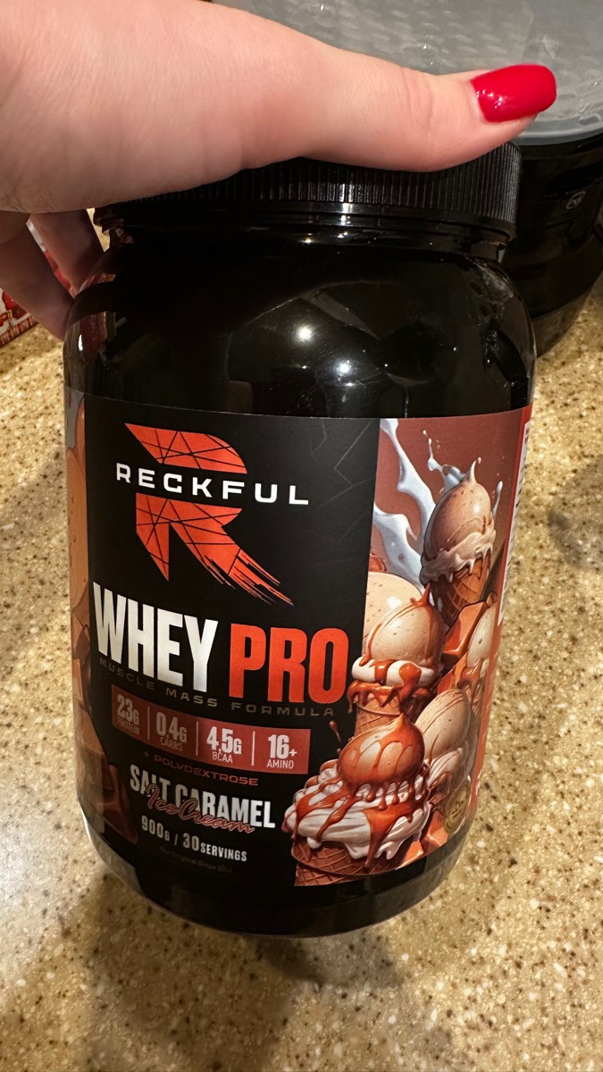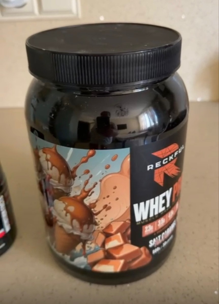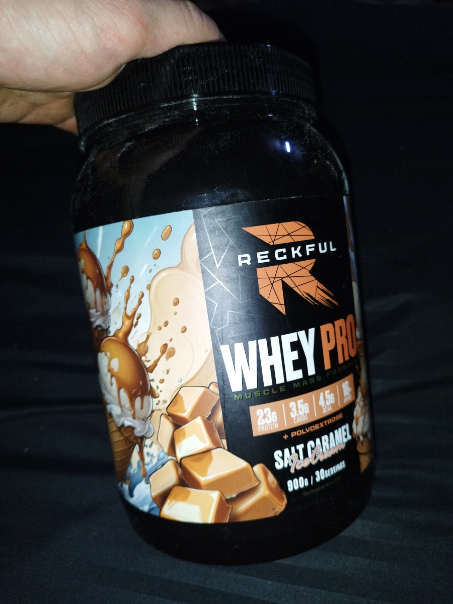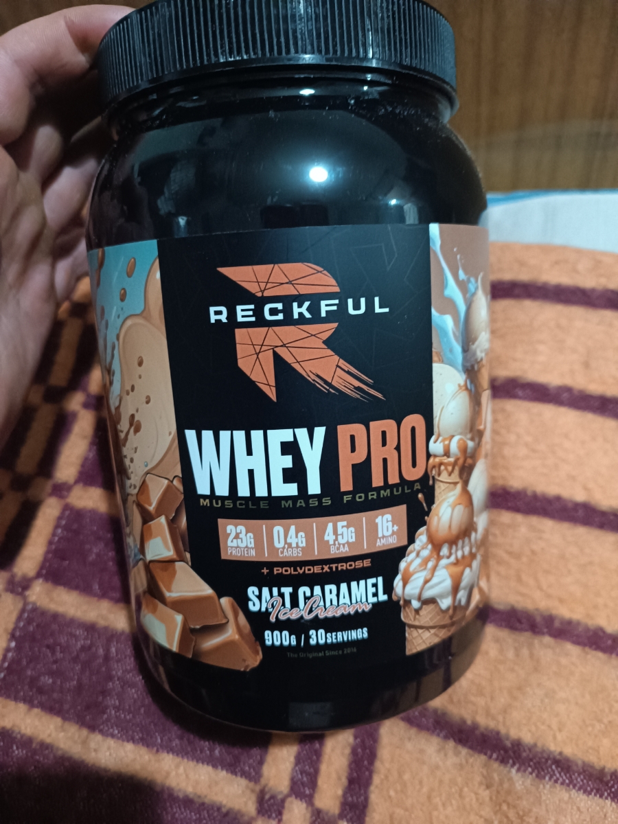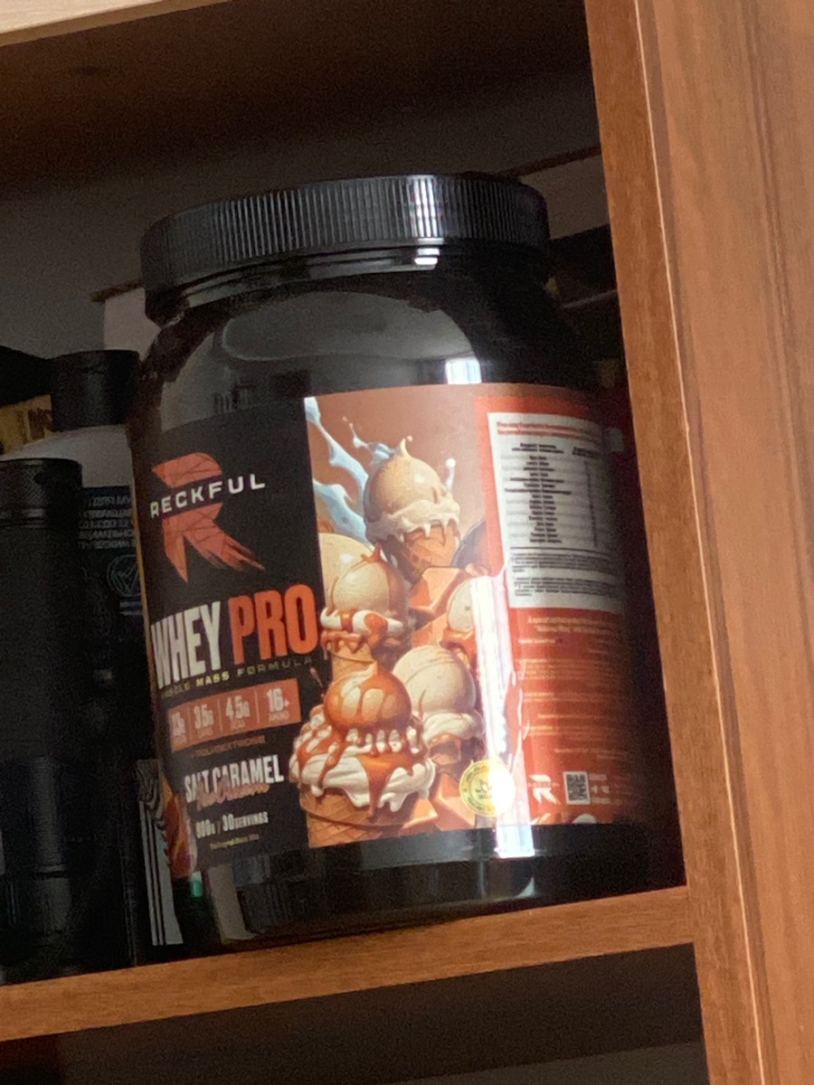 Reckful Delicious Whey Protein 900 граммов со вкусом соленая карамель — сывороточный протеин без добавления сахара и практически не содержащий в своем составе углеводы.