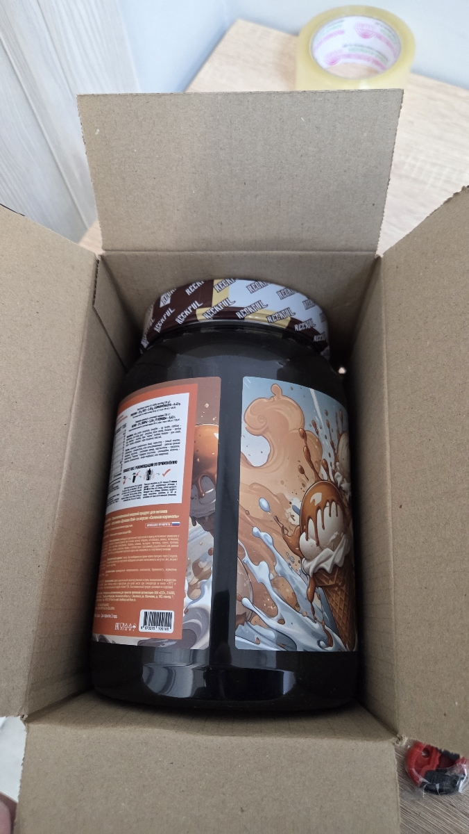 Хочется отдельно отметить дизайн этикетки, пожалуй один из самых красивых из всех имеющихся и лучший в РФ точно. Протеин вкусный, не приторный, ощущается вкус именно мороженного.