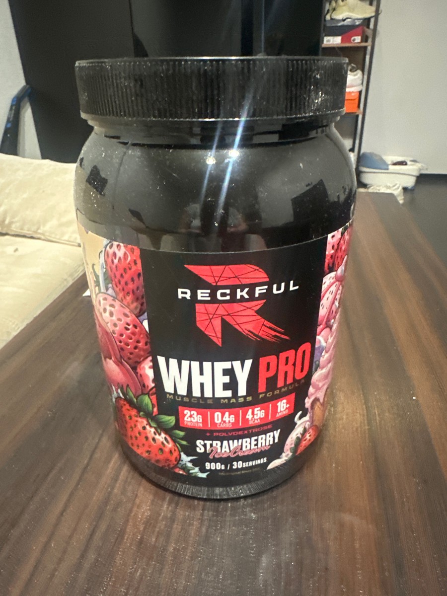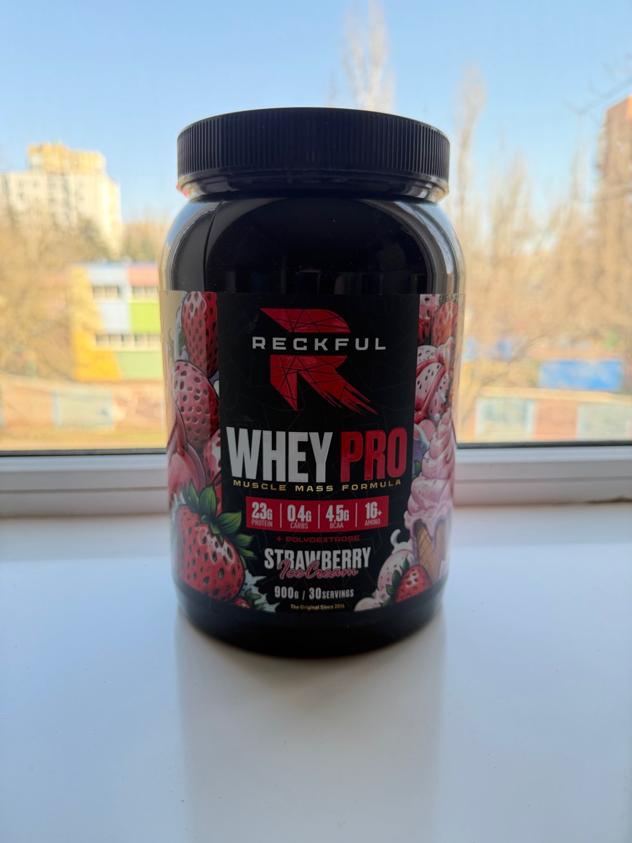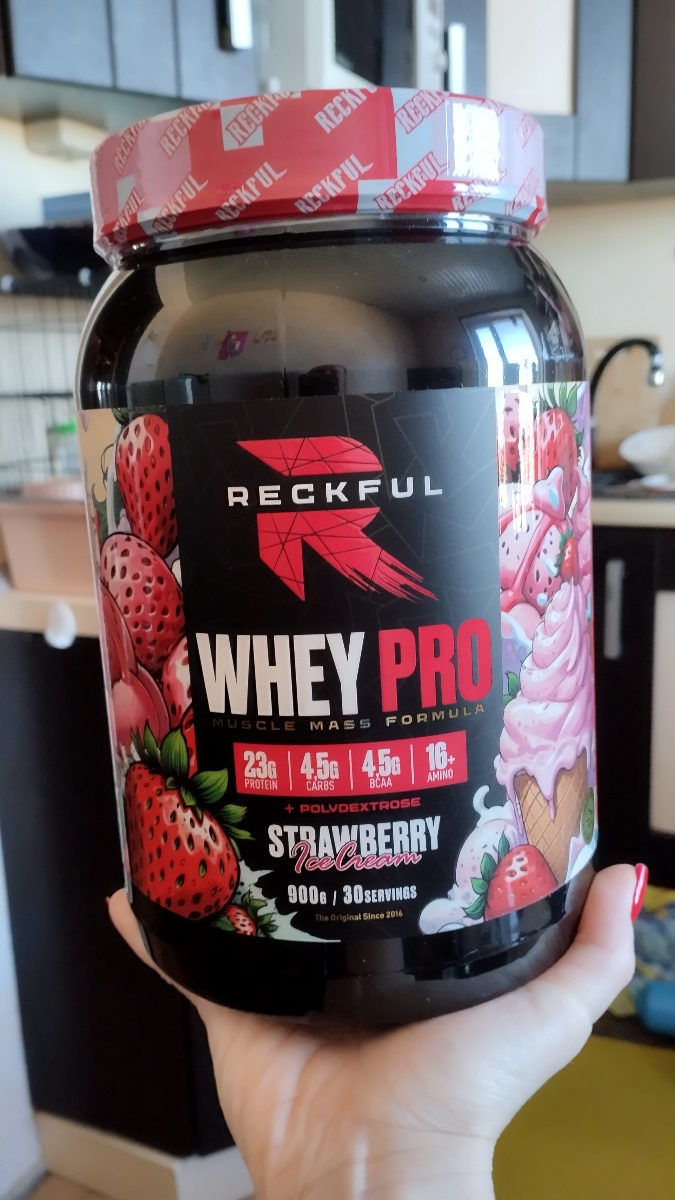 Reckful Delicious Whey Protein 900 граммов со вкусом клубники — сывороточный протеин без добавления сахара и практически не содержащий в своем составе углеводы.