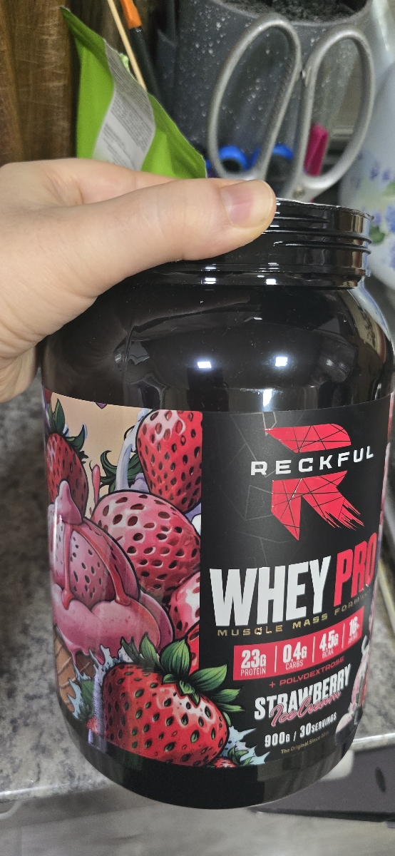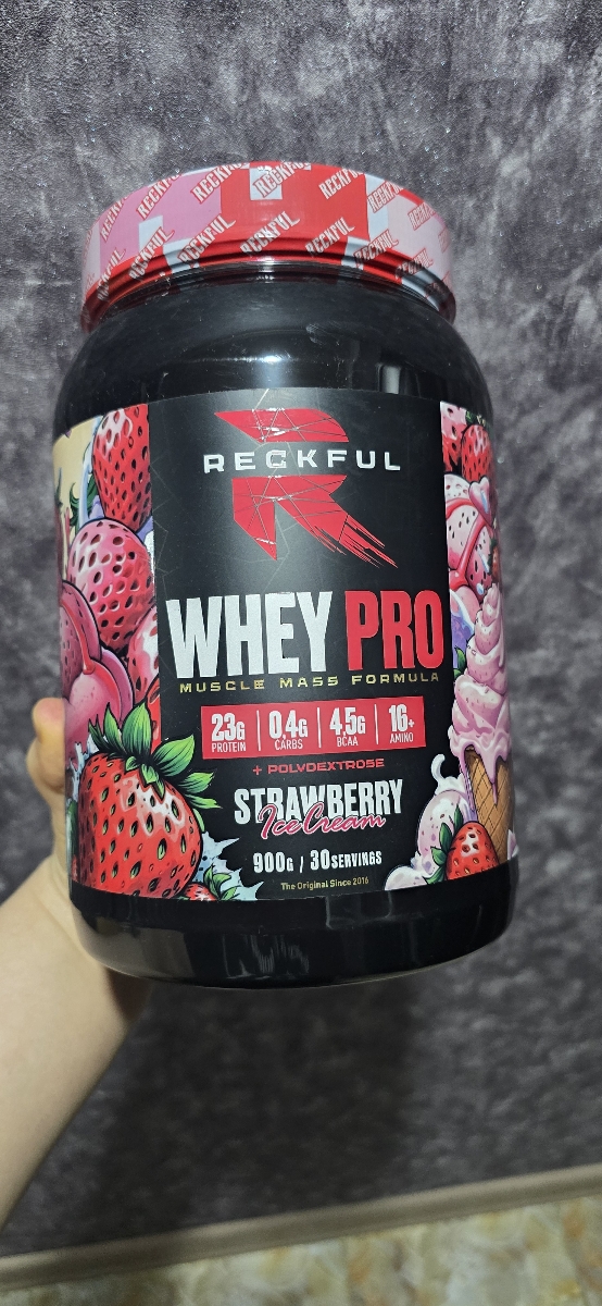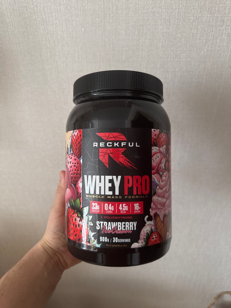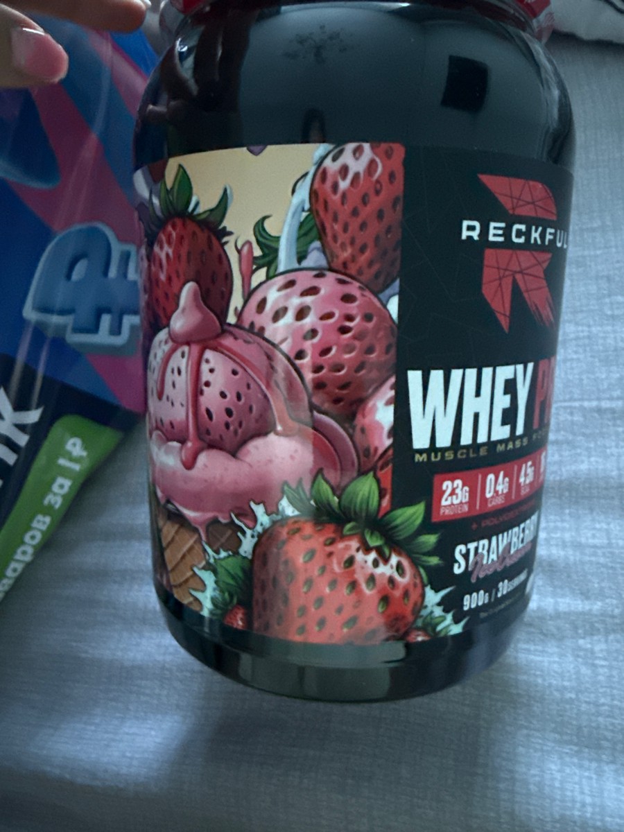 Reckful Delicious Whey Protein 900 граммов со вкусом клубники — сывороточный протеин без добавления сахара и практически не содержащий в своем составе углеводы.