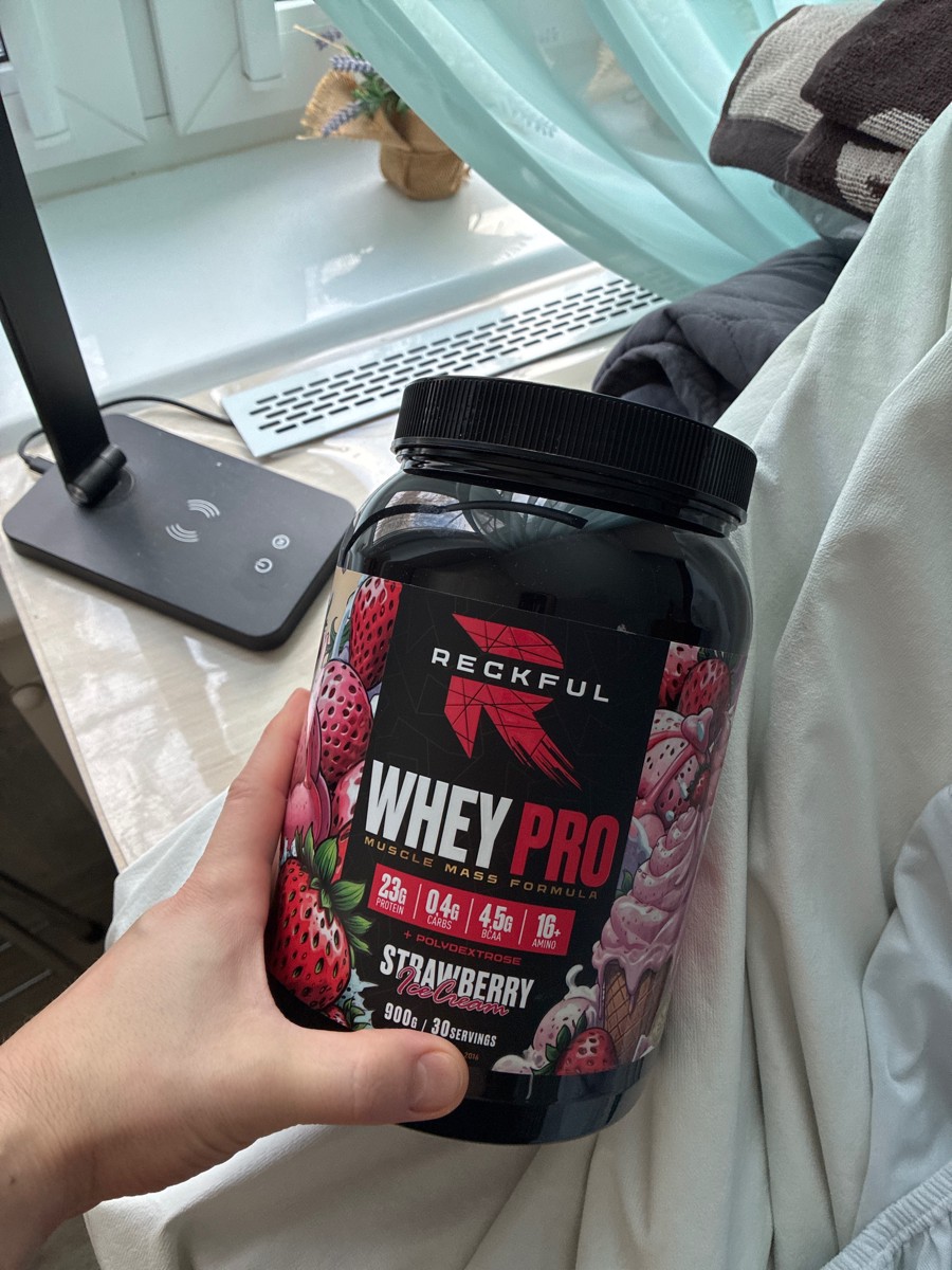протеин пришел быстро, раньше срока, упакован был в картонную коробку, все отлично, пользуюсь продукцией RECKFUL Рекомендую!