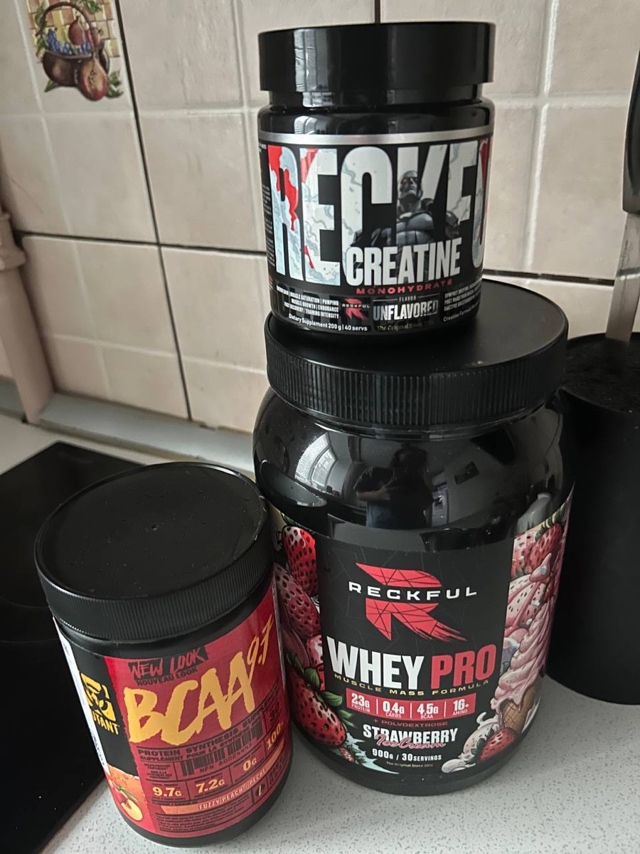 Клубничный Рекфул — норм. Вкус приятный, не химический, напоминает обычный коктейль. В воде растворяется без комков, и живот от него не пучит. Пью после тренировок — нормально идёт. Буду брать ещё.